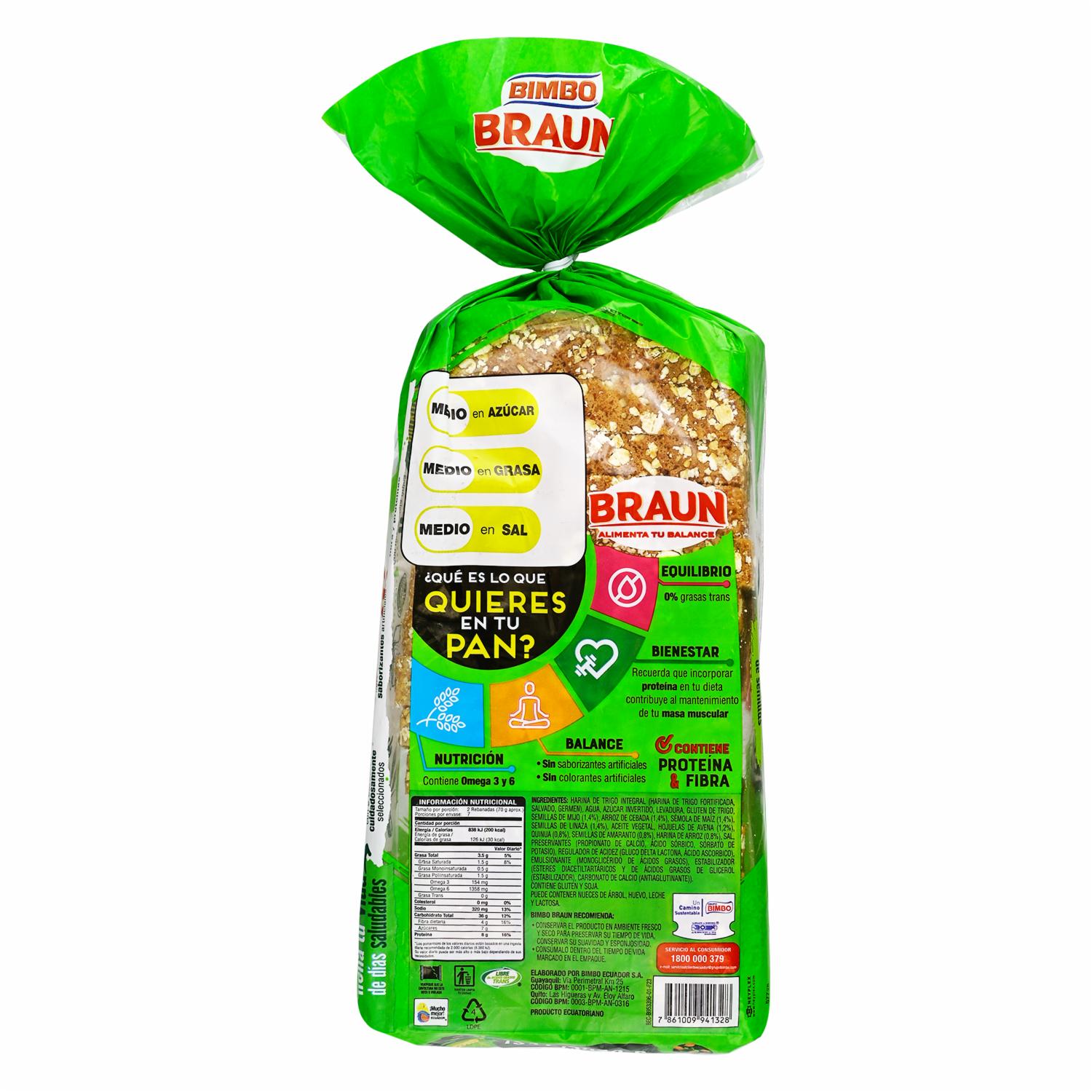 consultando preciosPan Molde 9 Cereales BRAUN 500 G – BRAUN. Disponible en nuestros locales. Precio y stock pueden variar según la tienda.