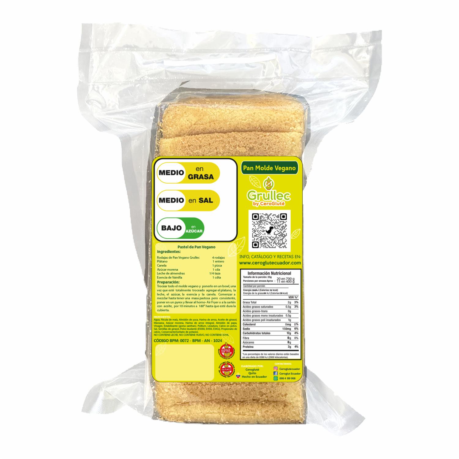 Pan Molde Cortado Sin Gluten Vegano GRULLEC 400 G – GRULLEC. Disponible en nuestros locales. Precio y stock pueden variar según la tienda.