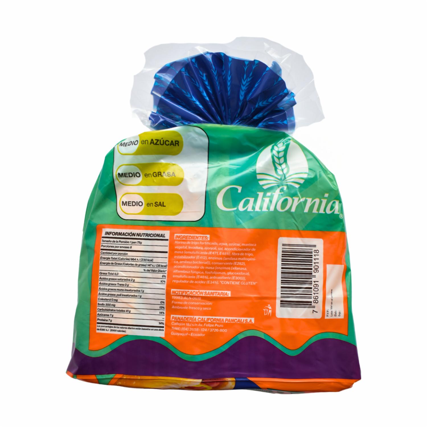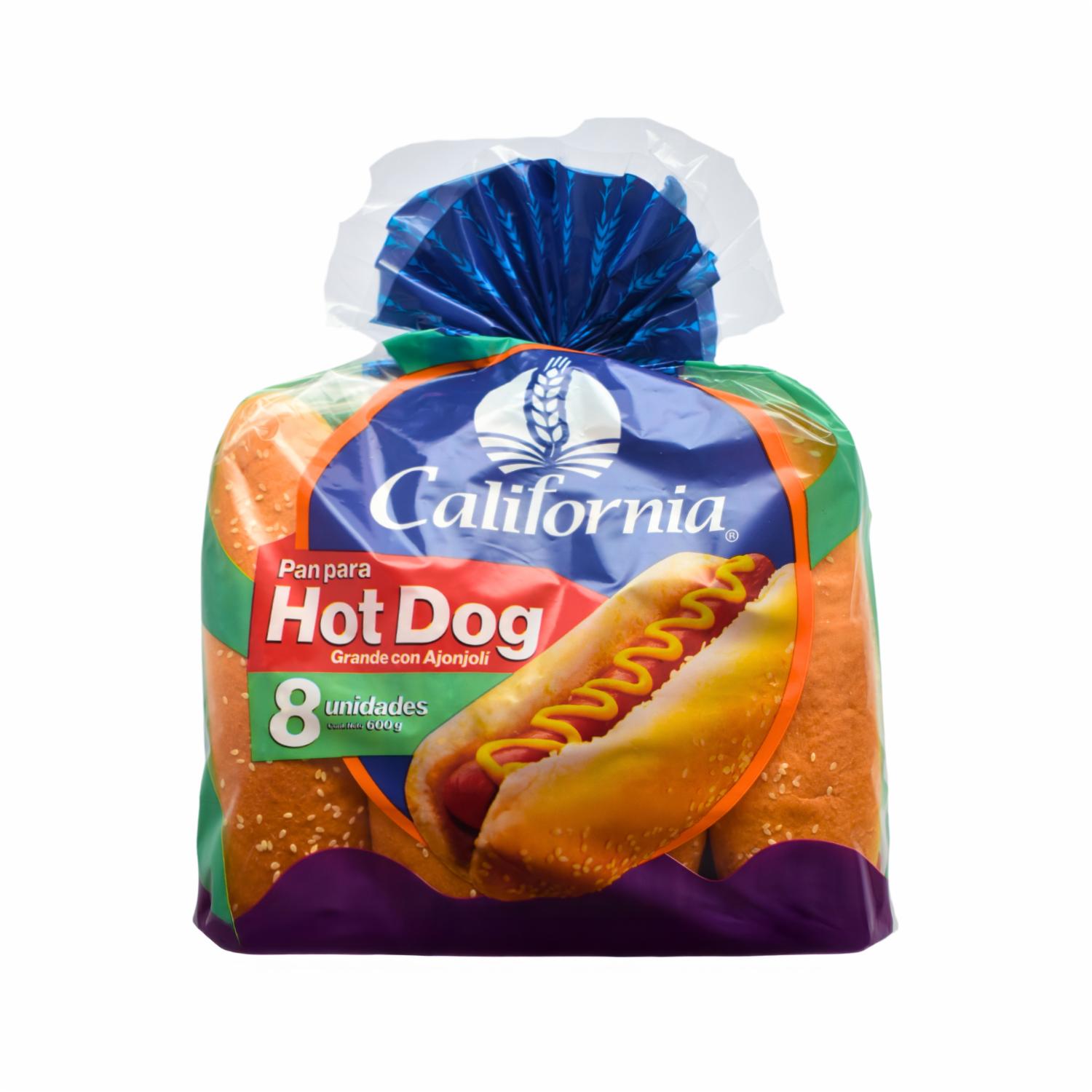 Pan Para Hot Dog Grande Con Ajonjolí CALIFORNIA X 8 Uds