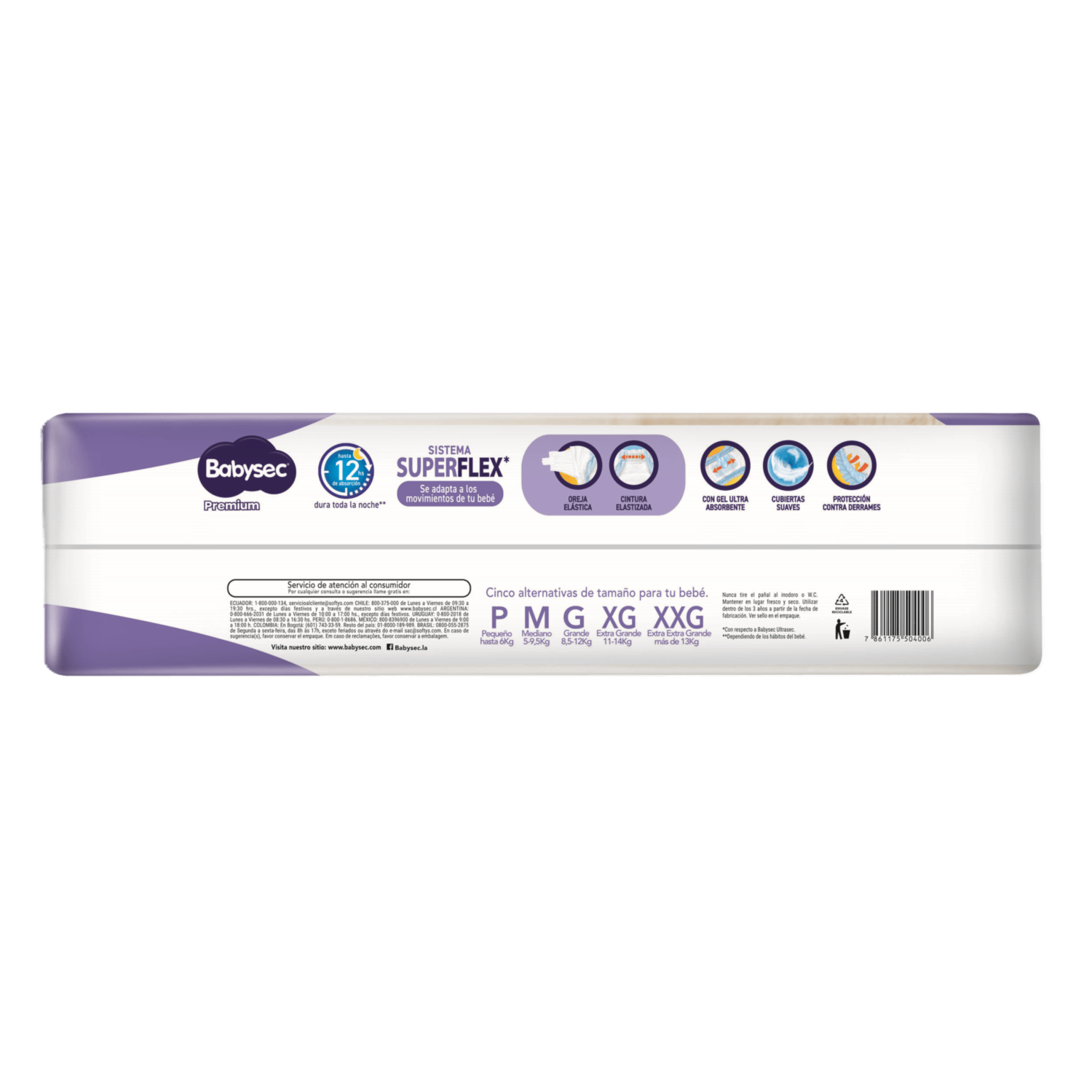 - Pañal Superflex, bandas elastizadas, más gel ultra absorbente, hasta 12 horas de absorción