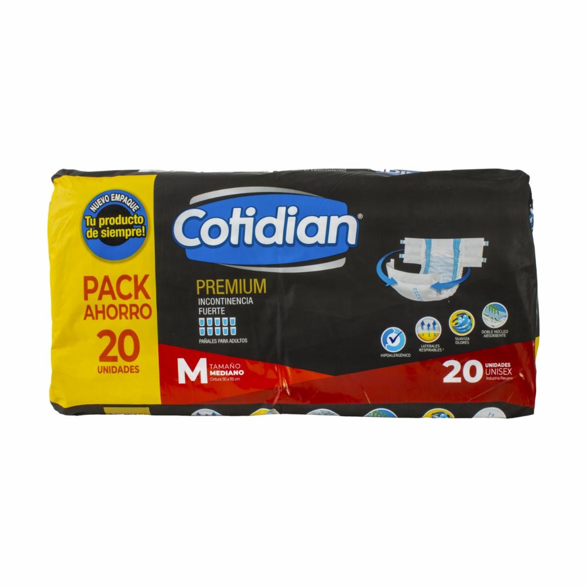 Pañal Para Adulto Premium Talla M COTIDIAN 20 Unidades – COTIDIAN. Disponible en nuestros locales. Precio y stock pueden variar según la tienda.