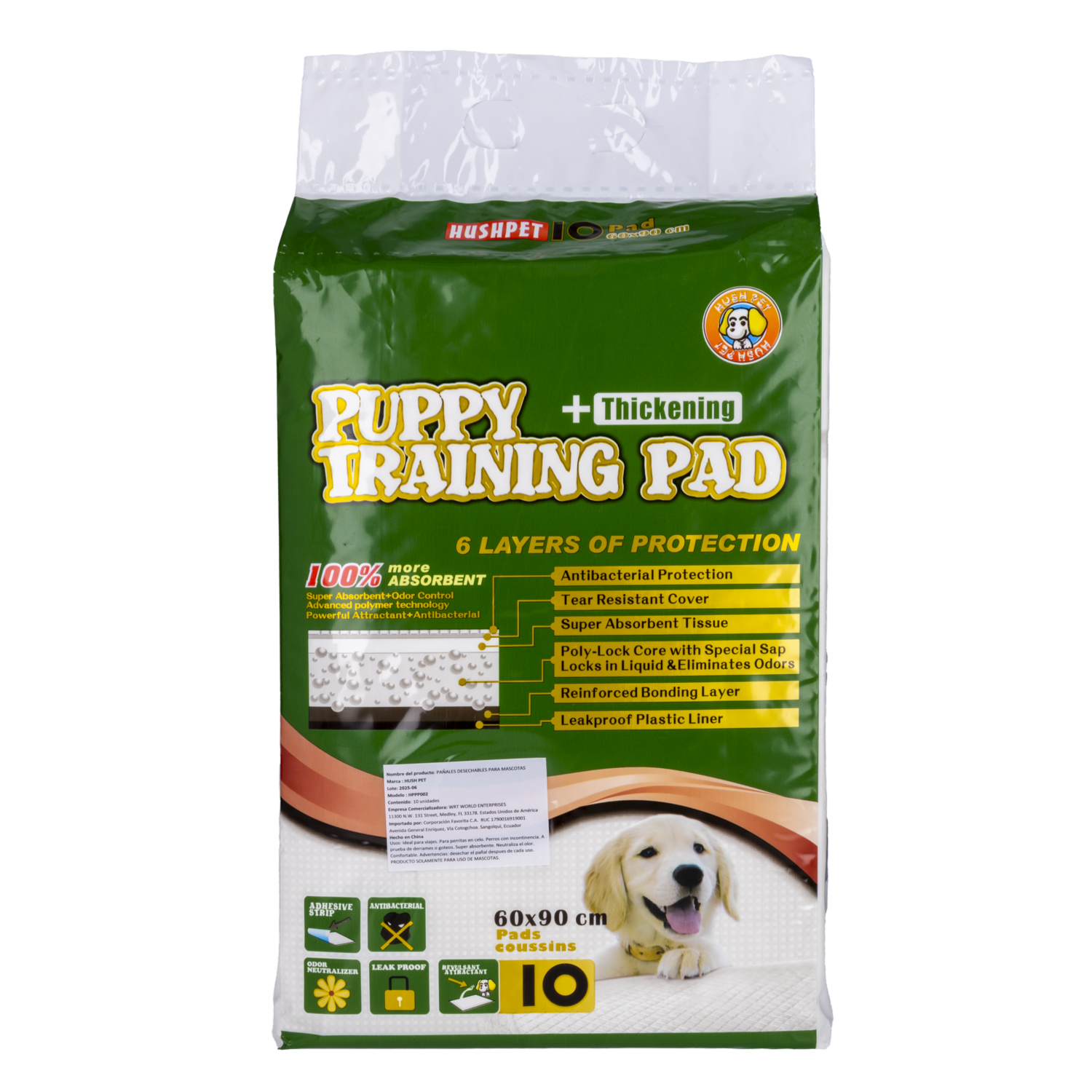 Pañal Para Mascota Para Piso HUSHPET X 10 Uds – HUSHPET. Disponible en nuestros locales. Precio y stock pueden variar según la tienda.