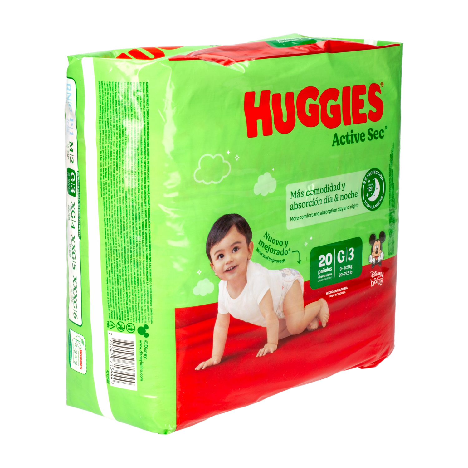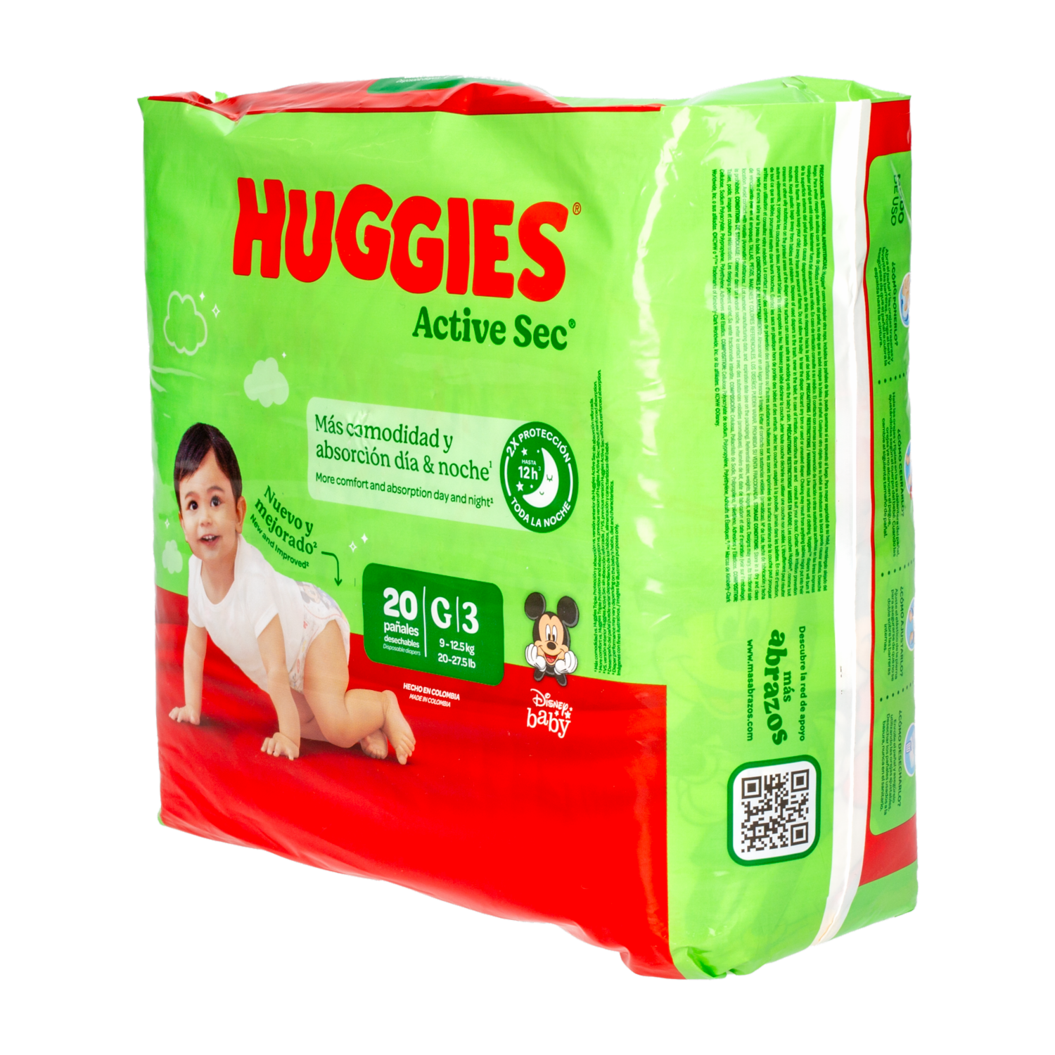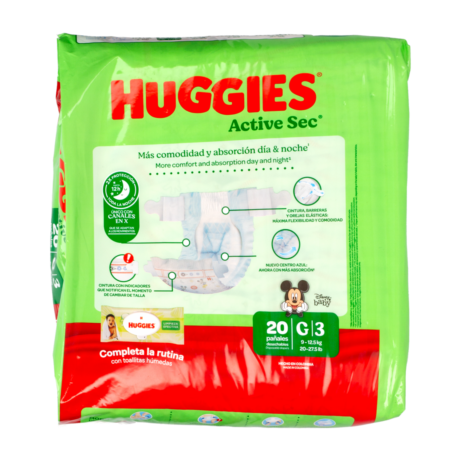 - Pañales Huggies Active Sec con canales que se adaptan a los movimientos de tu bebe, para una protección total y flexibilidad