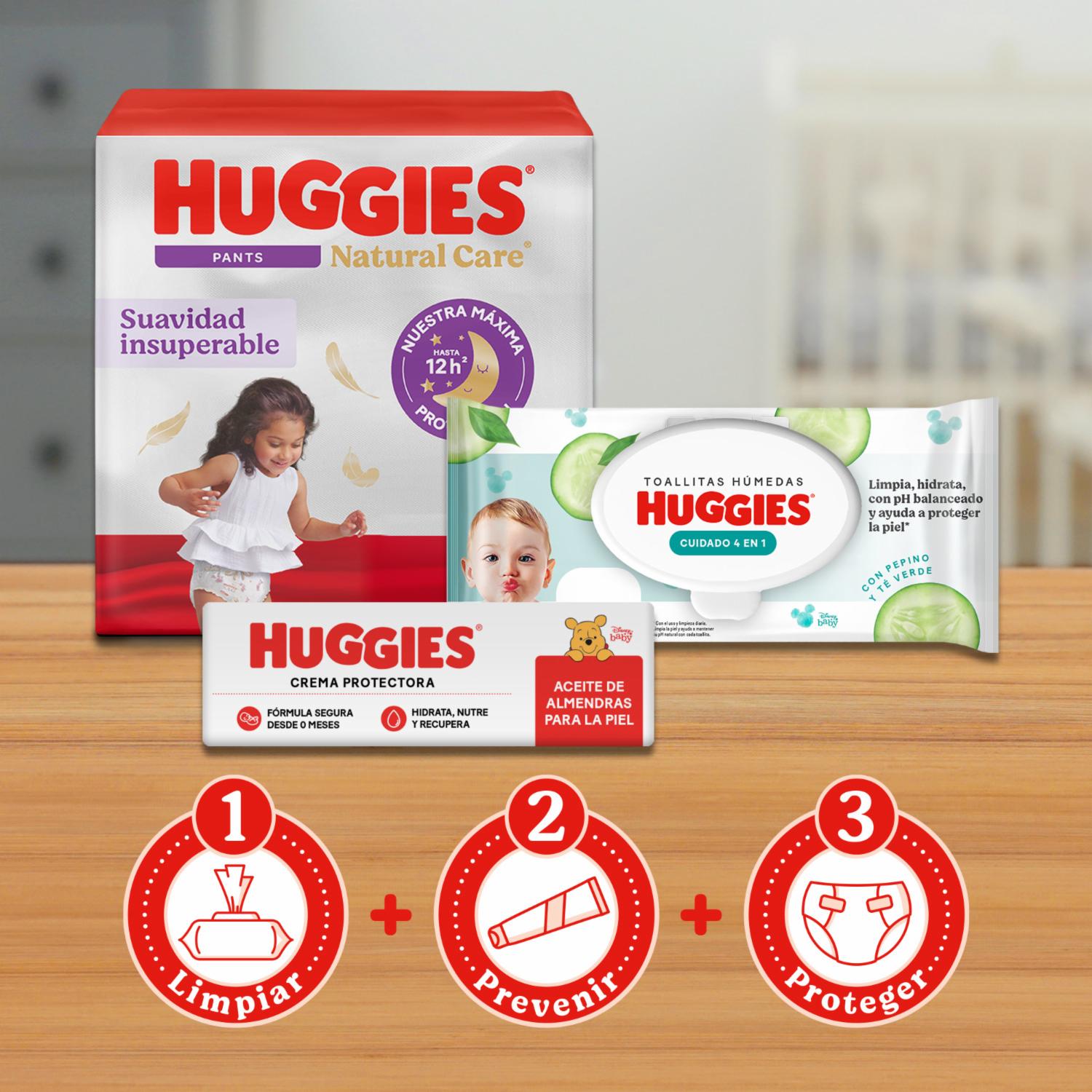 Los pañales Huggies Natural Care Pants son sinónimo de protección y comodidad. Con hasta 12 horas de protección contra filtraciones, tu bebé estará limpio y seco en todo momento