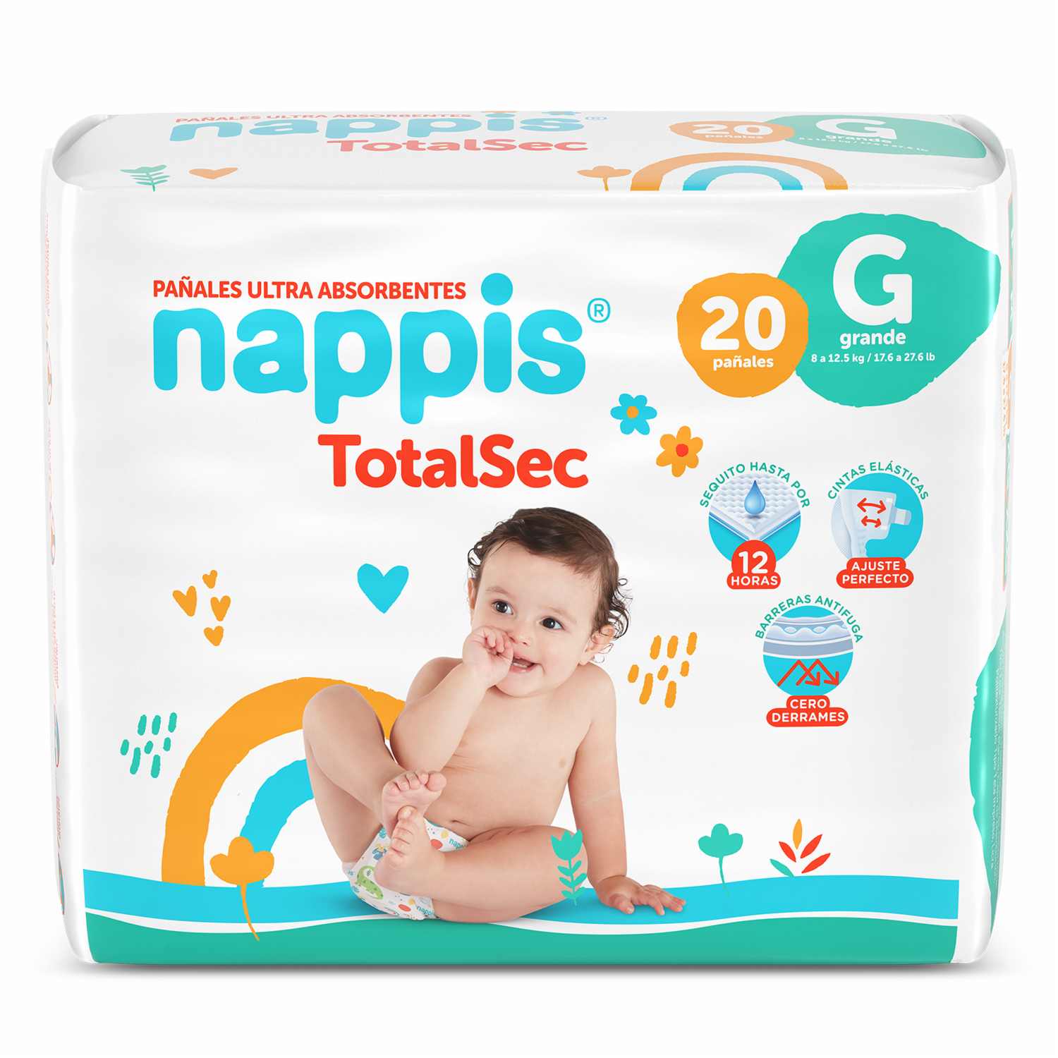 Pañales Desechables Total Sec Grande Para 8 A 12,5 Kg NAPPIS 20 U – NAPPIS. Disponible en nuestros locales. Precio y stock pueden variar según la tienda.