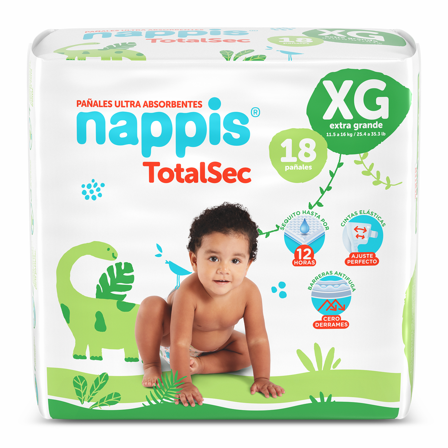 Pañales Desechables Total Sec Xg Para 11.5 A 16 Kg NAPPIS 18 U