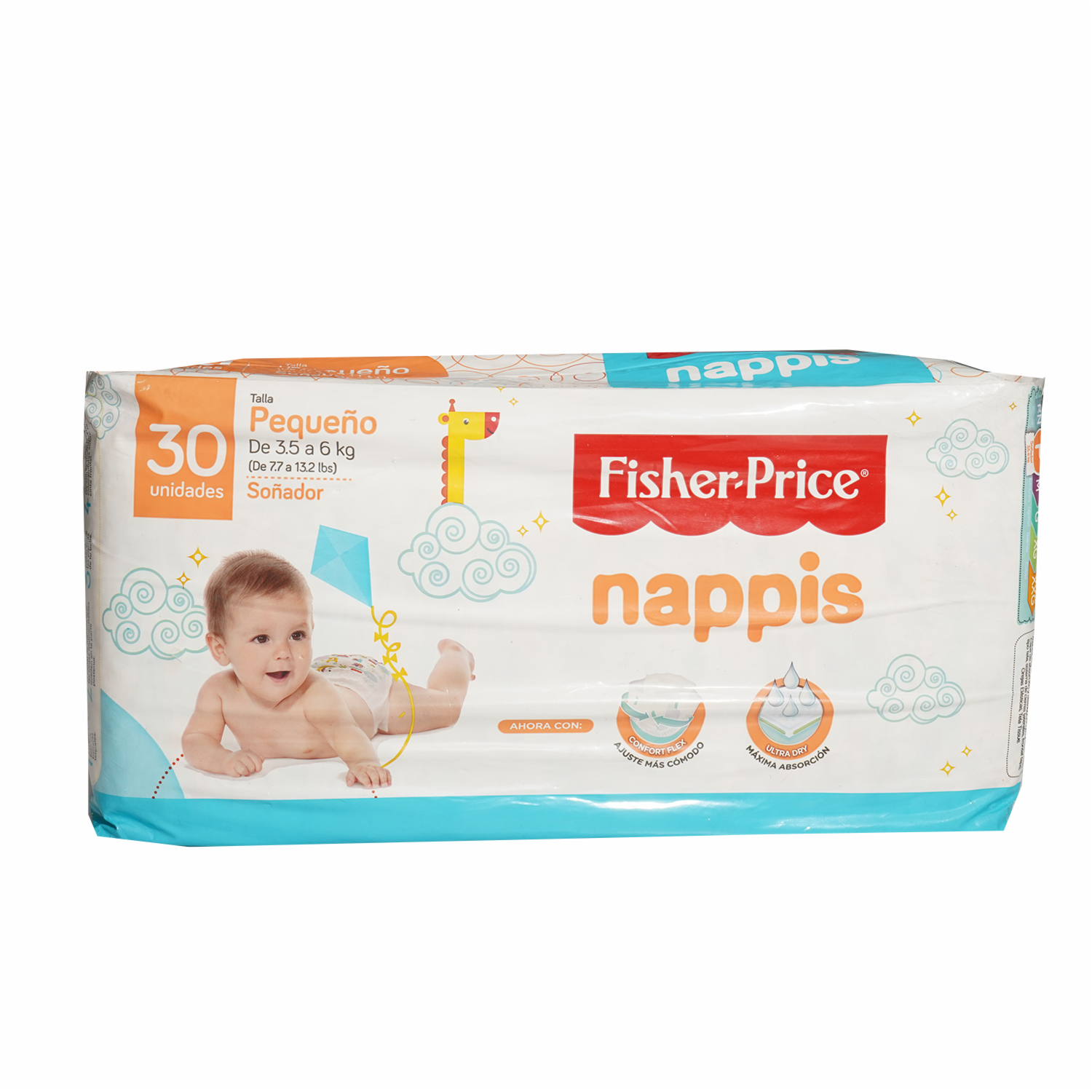 Pañales Nappis Pequeño FISHER PRICE 30 Unidades – FISHER PRICE. Disponible en nuestros locales. Precio y stock pueden variar según la tienda.