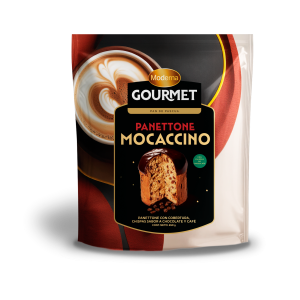 Panettone Moderna Chocoboom con cobertura de chocolate y chispas de chocoalte en la parte interna