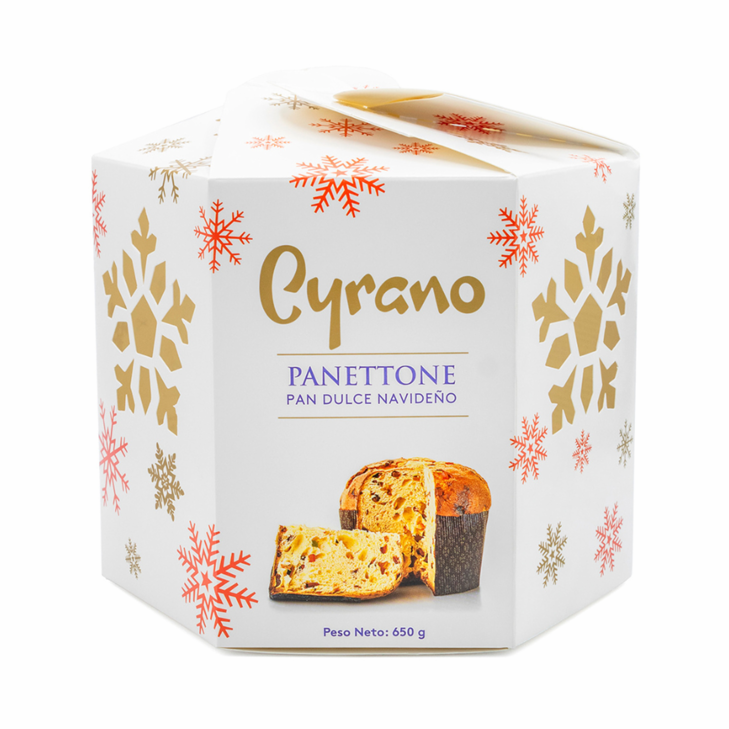Panettone Dulce Navideño Grande CYRANO 650 G – CYRANO. Disponible en nuestros locales. Precio y stock pueden variar según la tienda.
