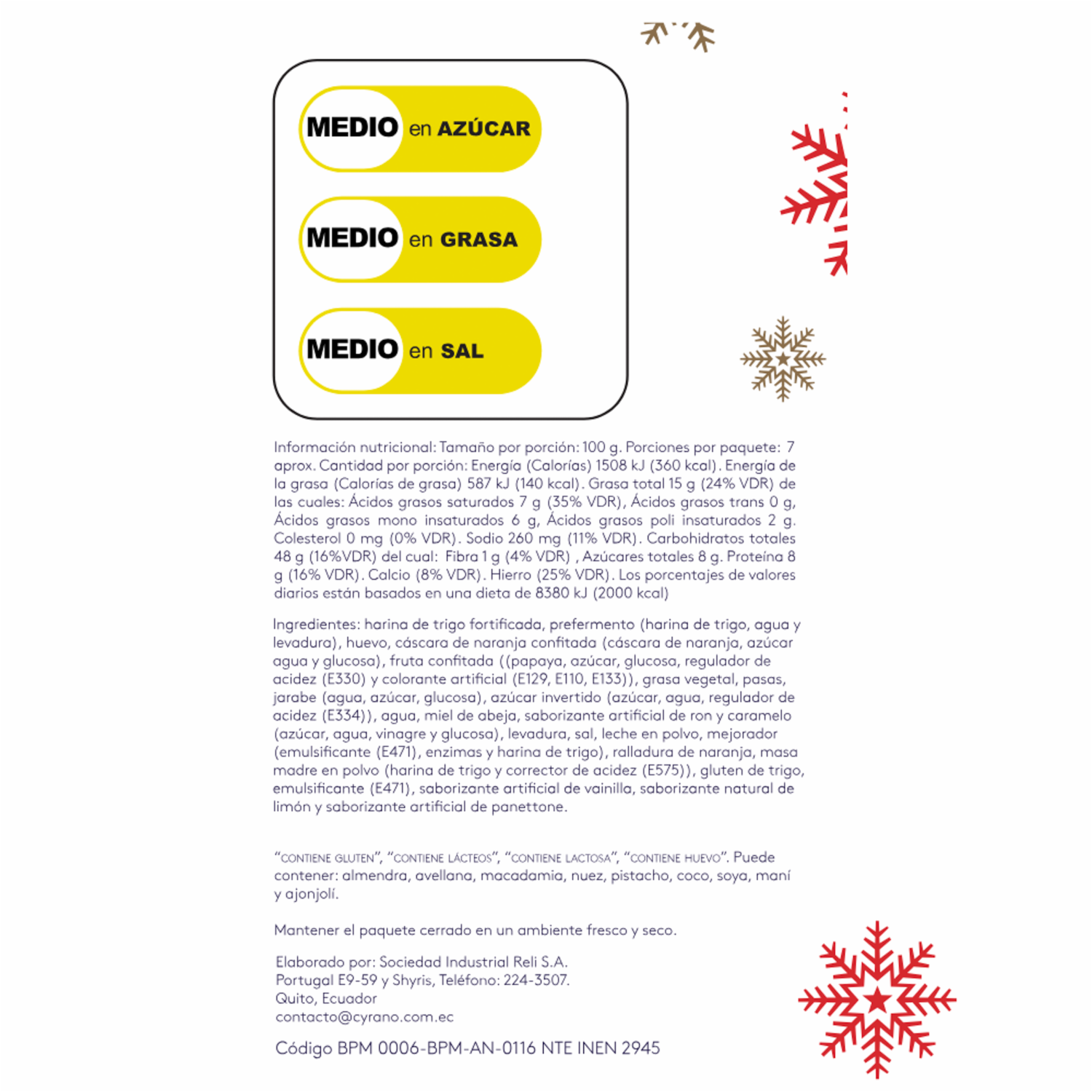 Panettone Dulce Navideño Grande CYRANO 650 G