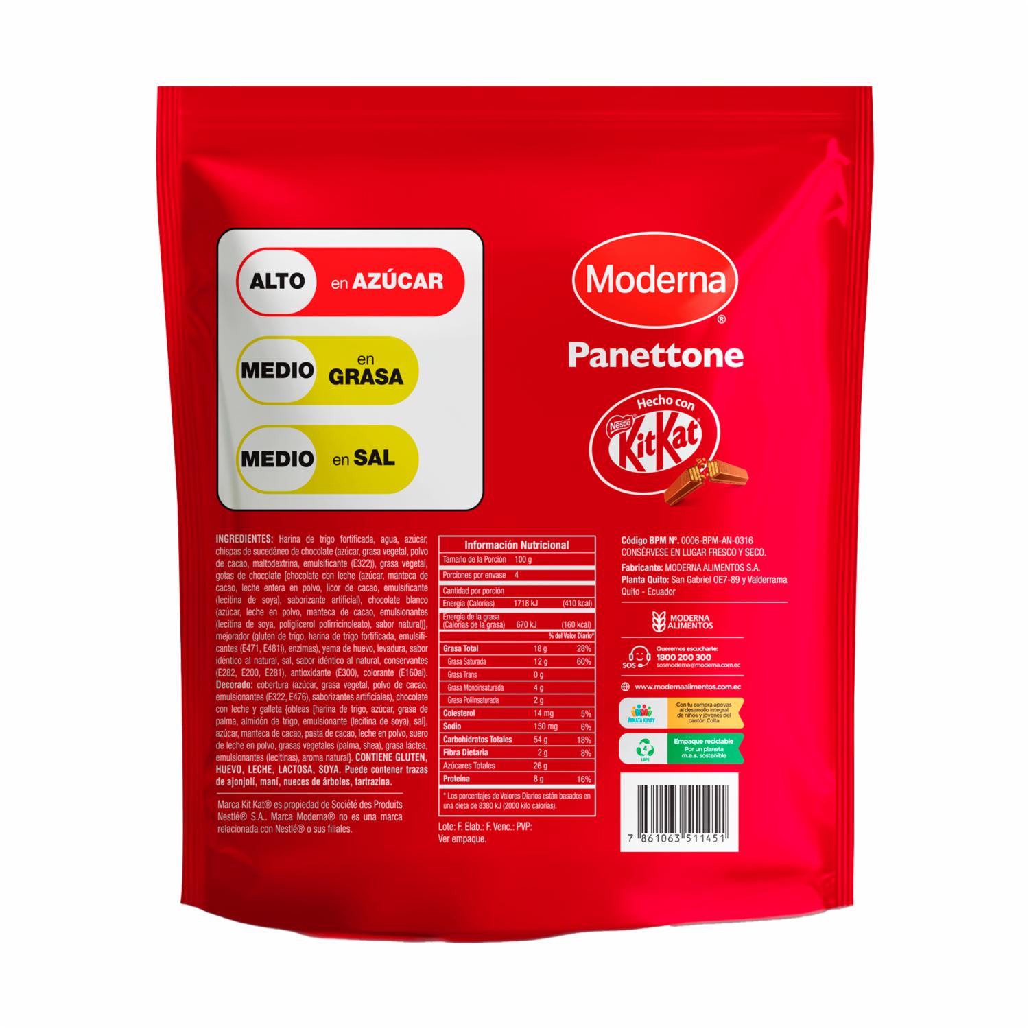 Panettone Moderna Kit Kat con cobertura de chocolate y galleta troceada kit kat