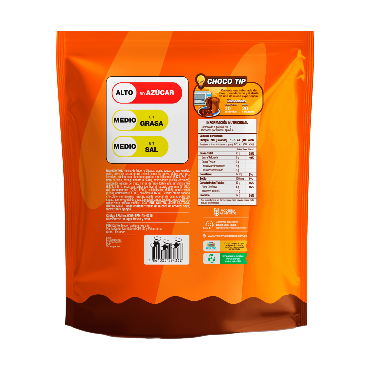 Panettone Manicho Creamy MODERNA 380 G – MODERNA. Disponible en nuestros locales. Precio y stock pueden variar según la tienda.