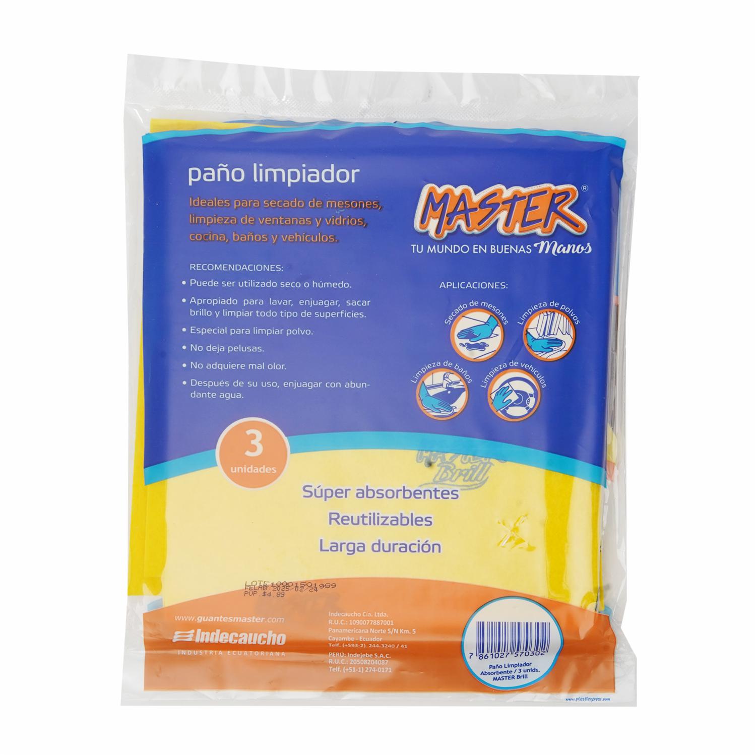 Paño Amarillo Multiusos MASTER 1 X 3 Unidades – MASTER. Disponible en nuestros locales. Precio y stock pueden variar según la tienda.