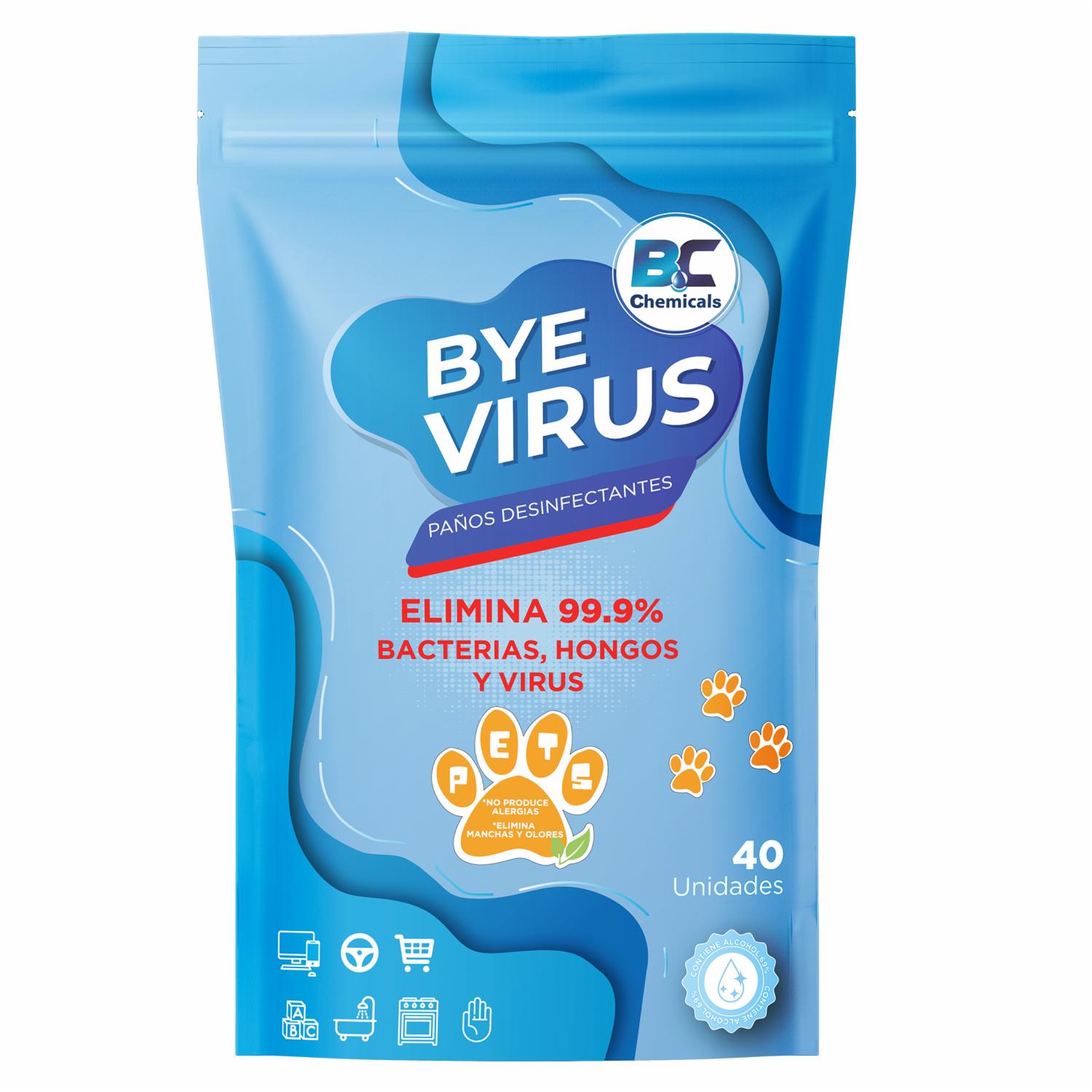 Paños Desinfectantes Para Superficies Pets Elimina Manchas Y Olores BYE VIRUS X 40 Uds