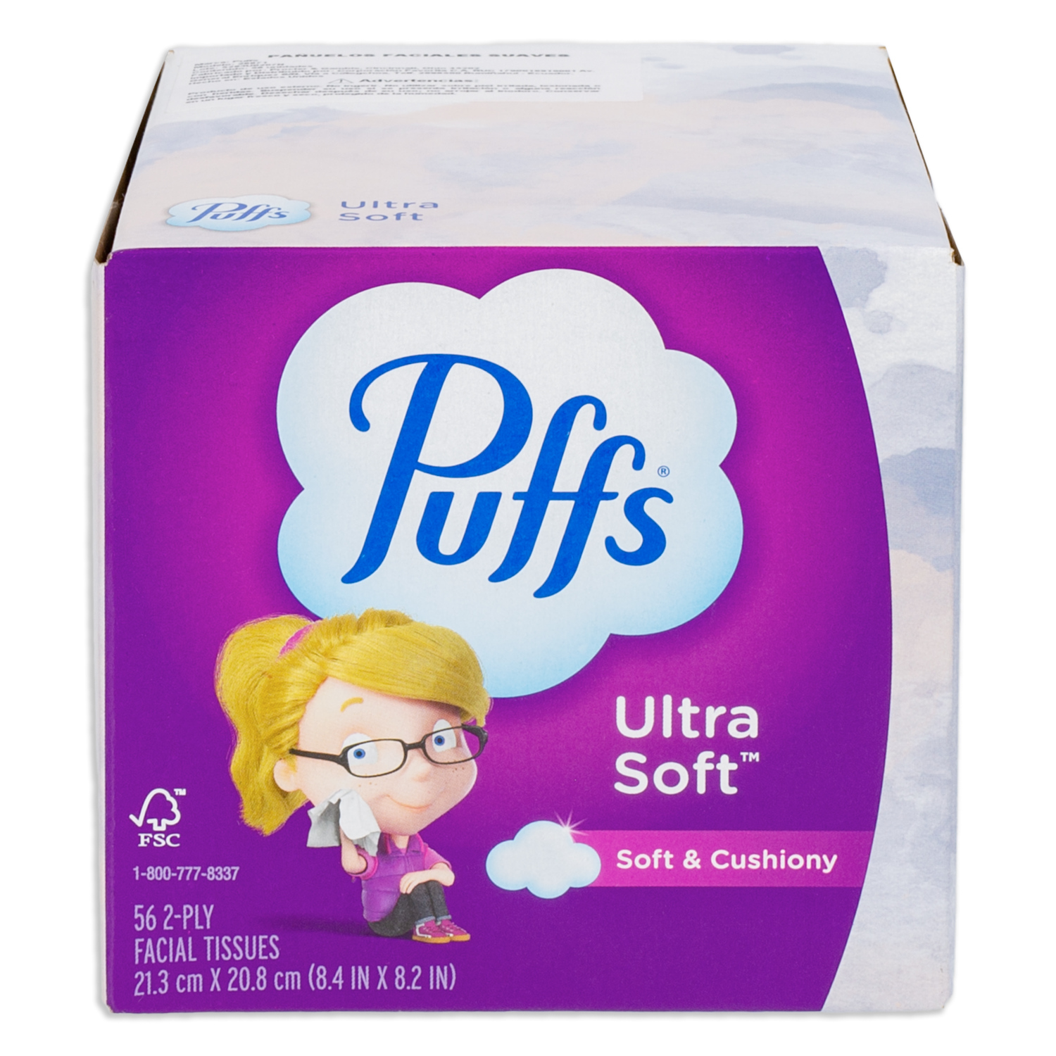 - Los pañuelos faciales Puffs Ultra Soft ofrecen una experiencia única de suavidad y confort que los hace delicados con la piel. Ideales para resfriados, alergias o estornudos frecuentes, cuidan incluso las narices más sensibles sin irritar. Además de suaves, son excepcionalmente resistentes, incluso al mojarse, brindando seguridad y absorción cuando más lo necesitas. Un aliado indispensable para tu cuidado diario, combinando confort, calidad y confianza en cada uso