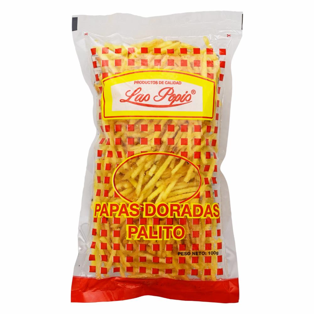 Papas Doradas Palitos LAS POPIS 100 G – LAS POPIS. Disponible en nuestros locales. Precio y stock pueden variar según la tienda.