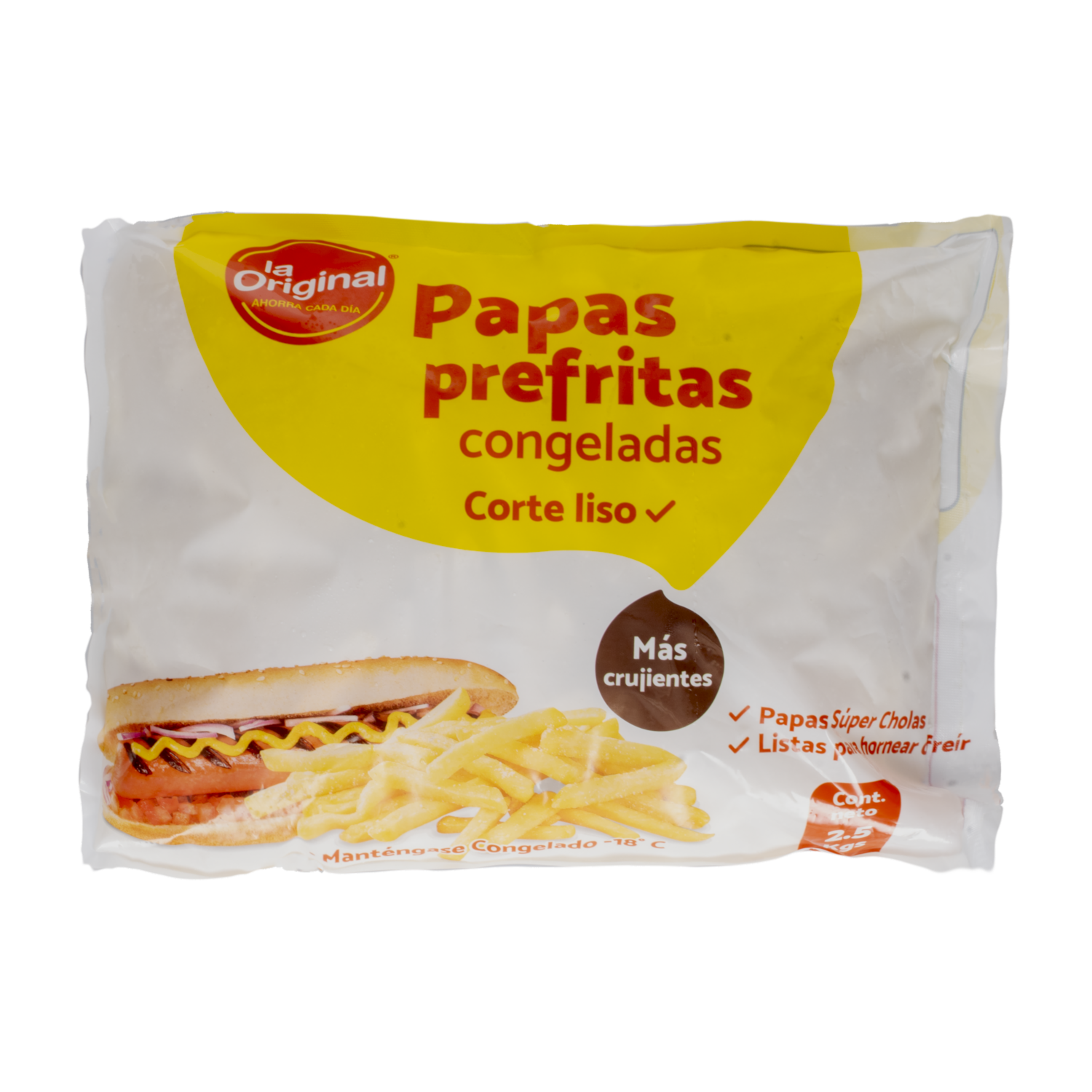 - Las papas congeladas prefritas de corte liso de LA ORIGINAL son una opción conveniente y deliciosa para disfrutar en cualquier momento. Con su presentación en un paquete de 2.50 Kg, estas papas ofrecen un corte uniforme que garantiza una textura crujiente por fuera y tierna por dentro