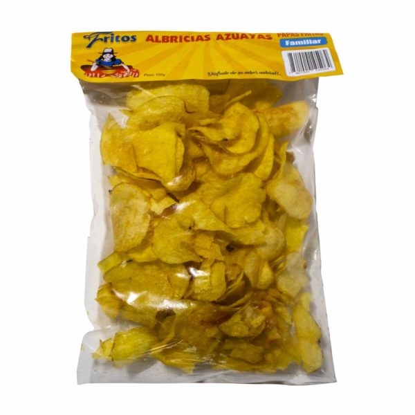 Las papas fritas en palito Albricias en presentación de 100 g son un snack delicioso y crujiente que se disfruta en muchas ocasiones como un aperitivo sabroso y conveniente. Albricias es una marca reconocida por su calidad y sabor en el mercado de snacks