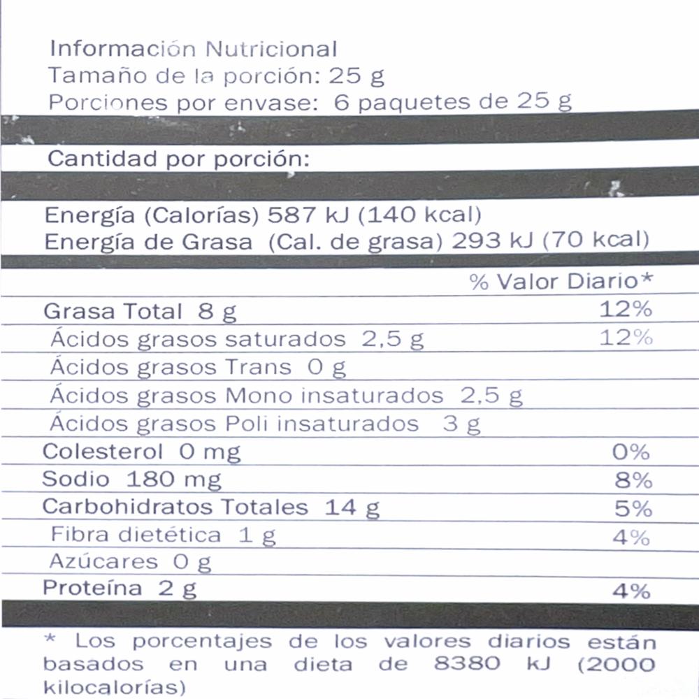 Irresistibles chips crocantes de papas gruesas y rústicas con una combinación de pimientas verde, roja, negra y blanca que las hace únicas y exquisitas