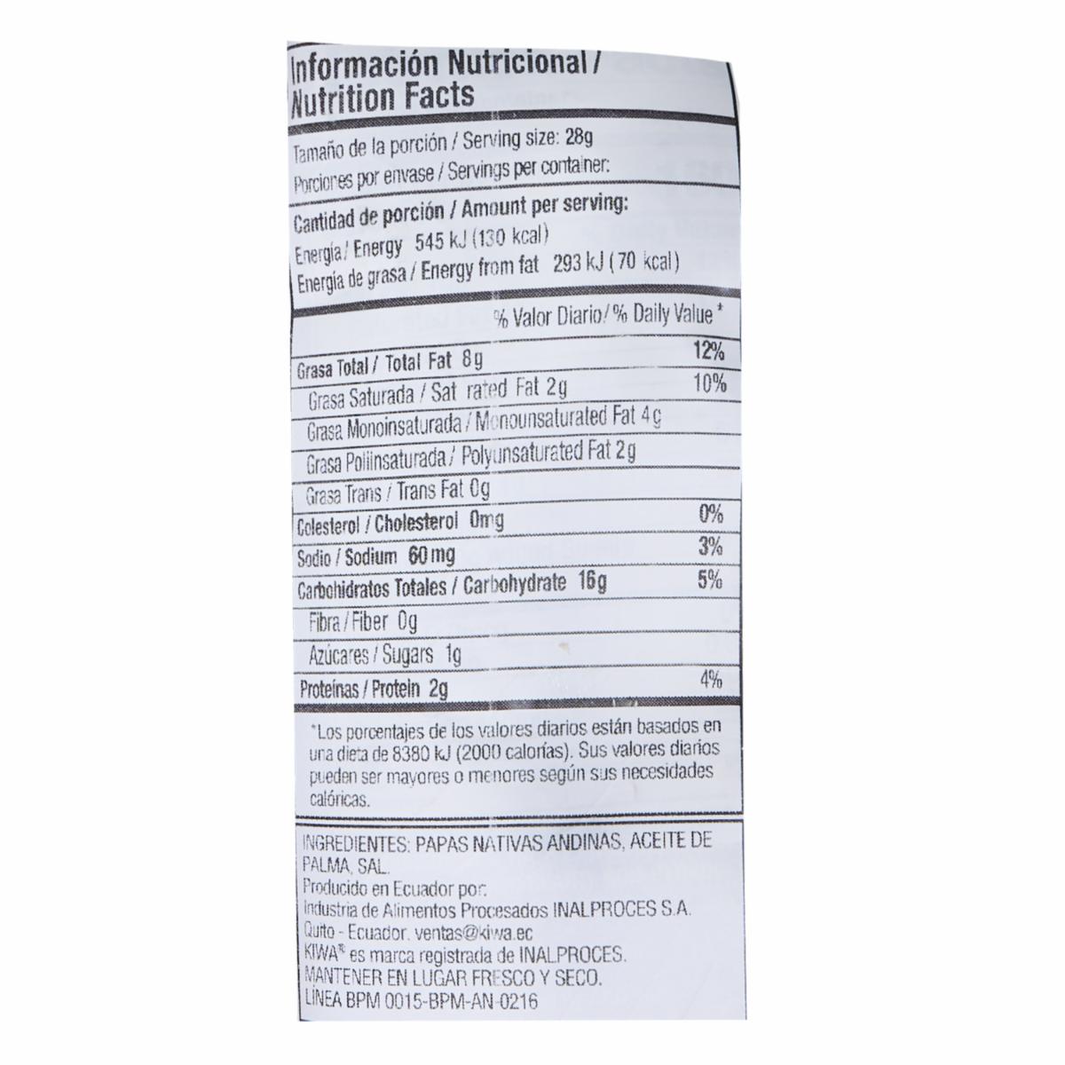 Papas Fritas Nativas KIWA 113 G – KIWA. Disponible en nuestros locales. Precio y stock pueden variar según la tienda.