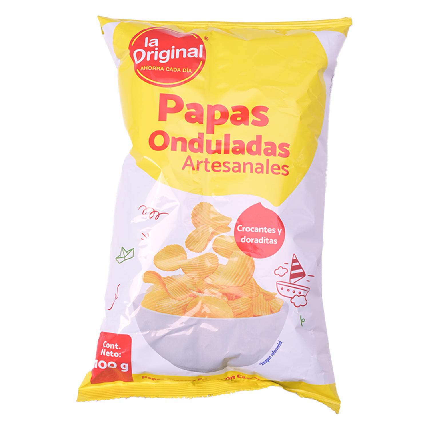 Papas Fritas Onduladas Artesanales LA ORIGINAL 100 G – LA ORIGINAL. Disponible en nuestros locales. Precio y stock pueden variar según la tienda.