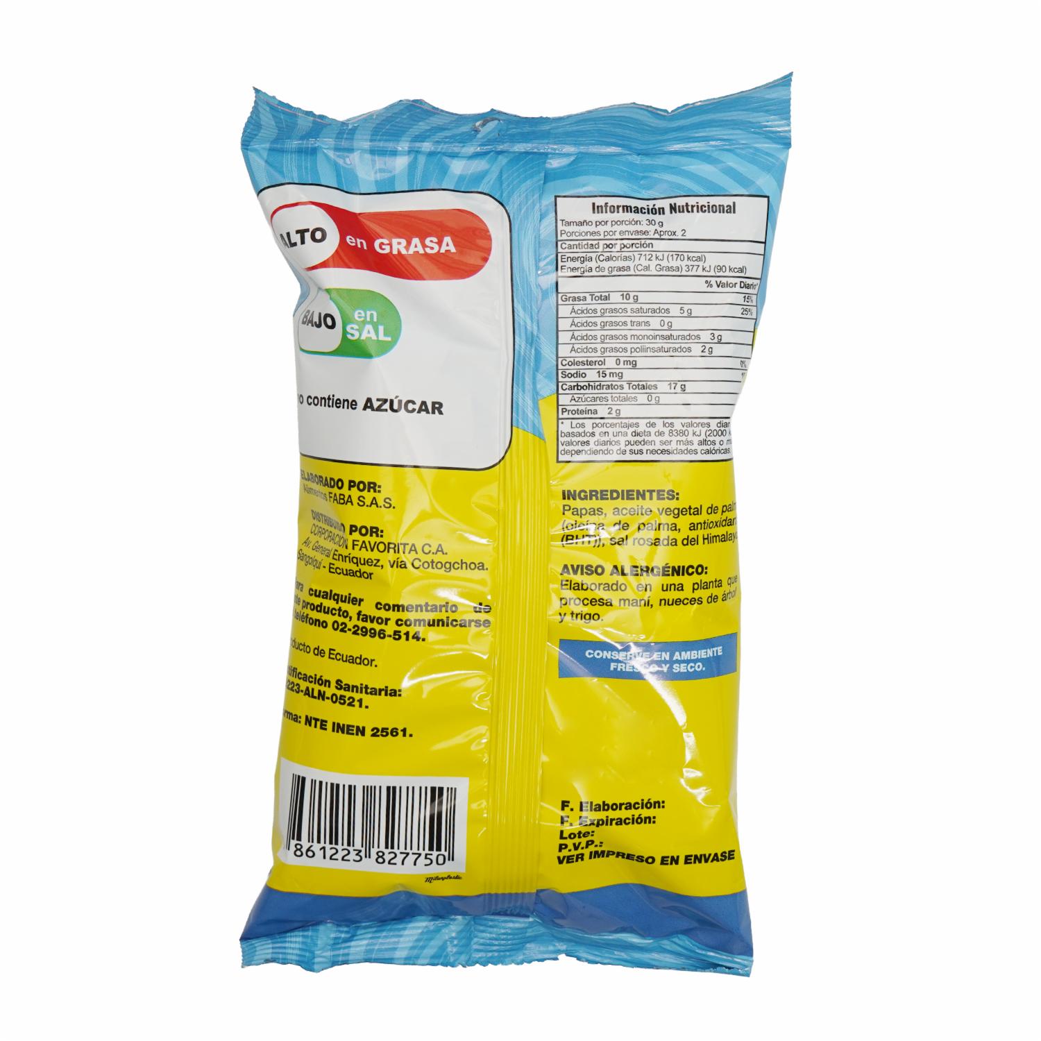 Crujientes papas fritas onduladas con un sabor casero irresistible. Perfectas para acompañar snacks, hamburguesas o disfrutar solas. Presentación práctica y tamaño ideal para cualquier ocasión