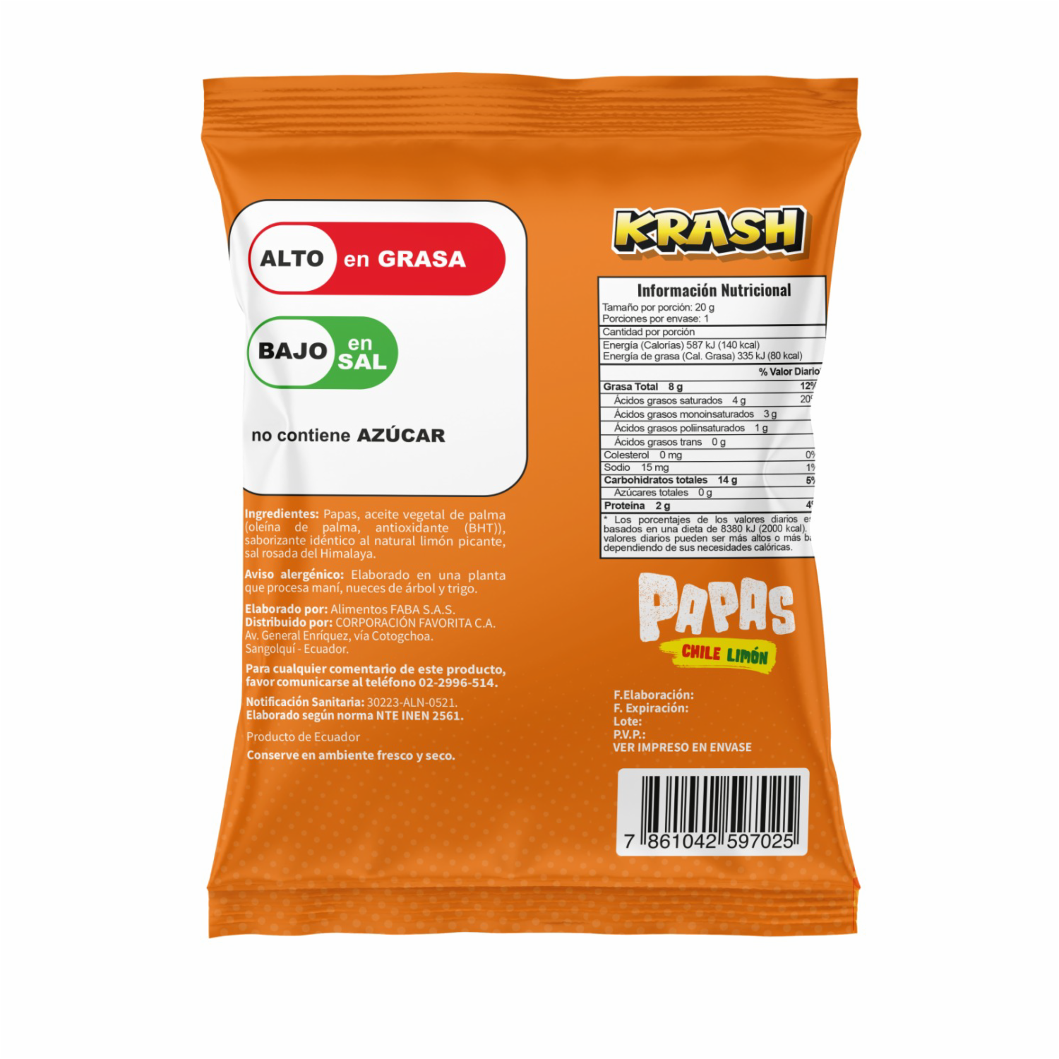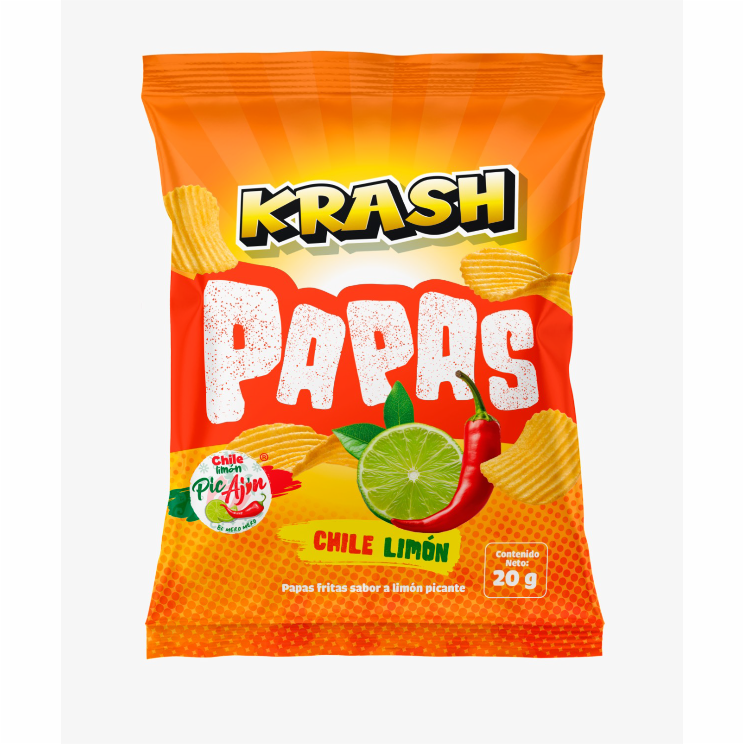 Papas Fritas Sabor A Limón Picante Con Pic Ajín KRASH 20 G
