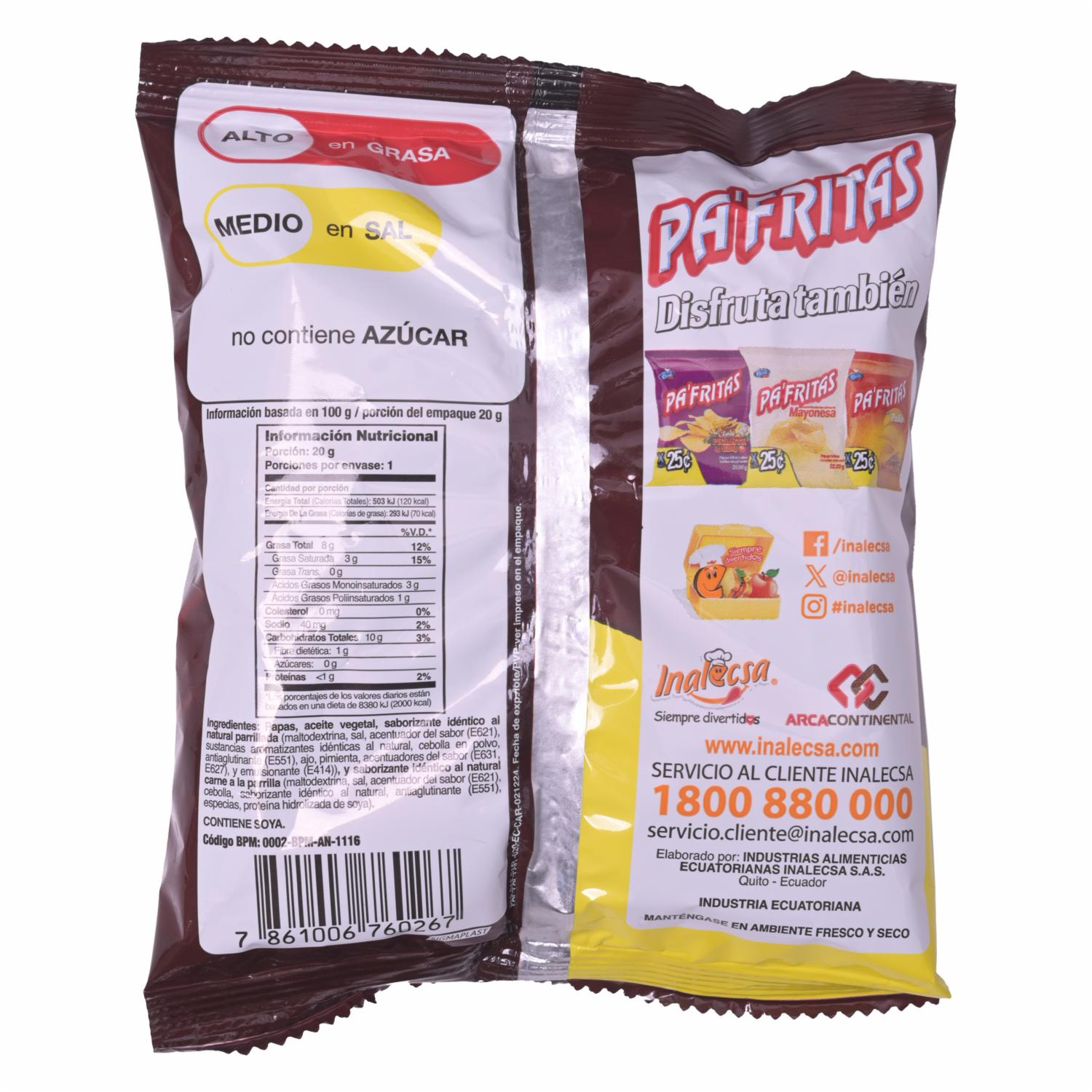 Papas Fritas Sabor A Parrillada PA’FRITAS 20 G