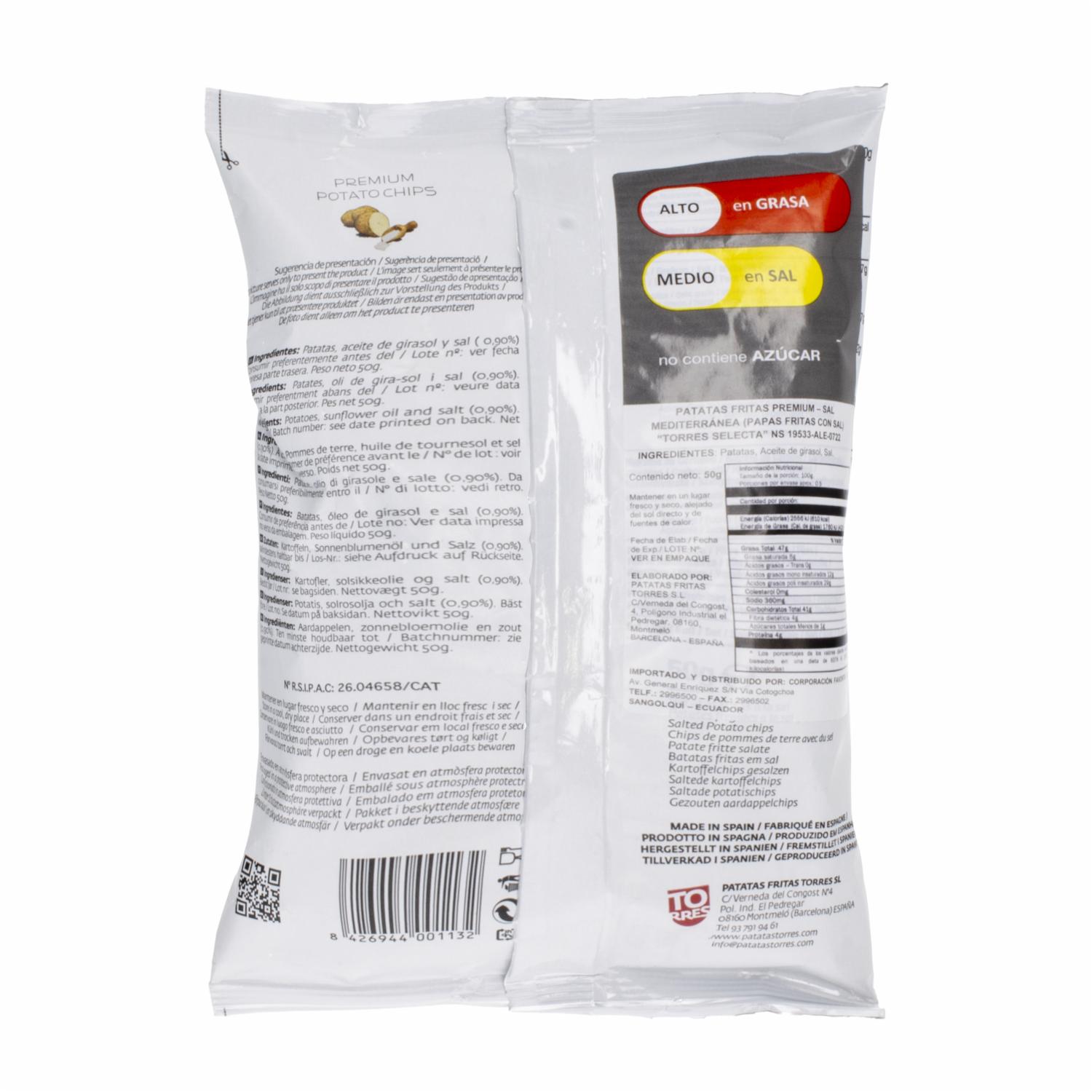 Papas Fritas Sabor A Sal Mediterránea TORRES 50 G – TORRES. Disponible en nuestros locales. Precio y stock pueden variar según la tienda.