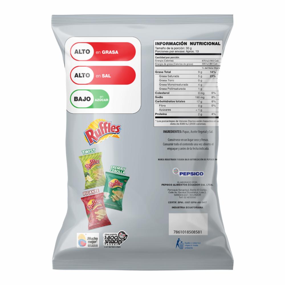 - Papas fritas con sabor a original. - Textura crujiente y sabrosa. - Bolsa sellada para mantener la frescura. - Adecuado para compartir en reuniones o como snack individual