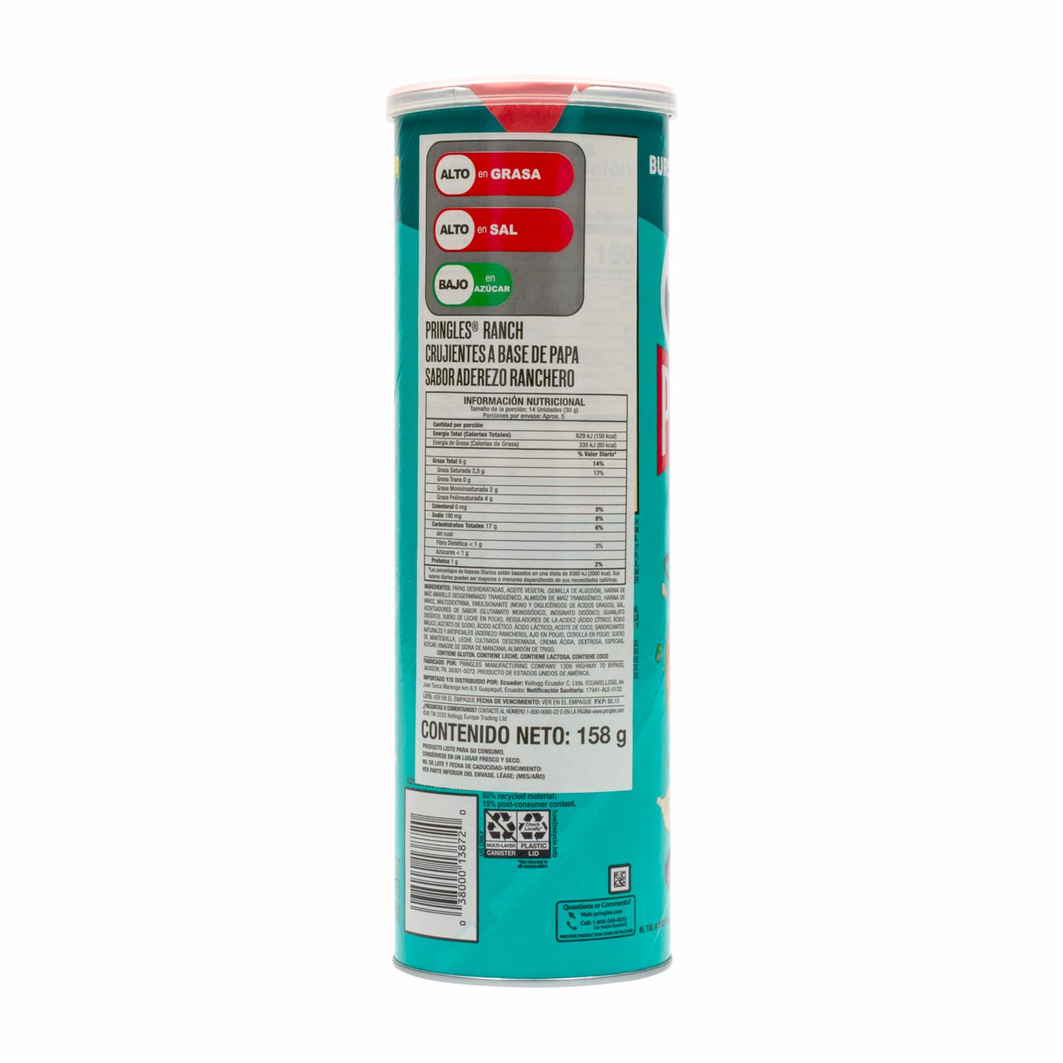 • Las papas fritas sabor Ranch de Pringles vienen en un envase de 158 g