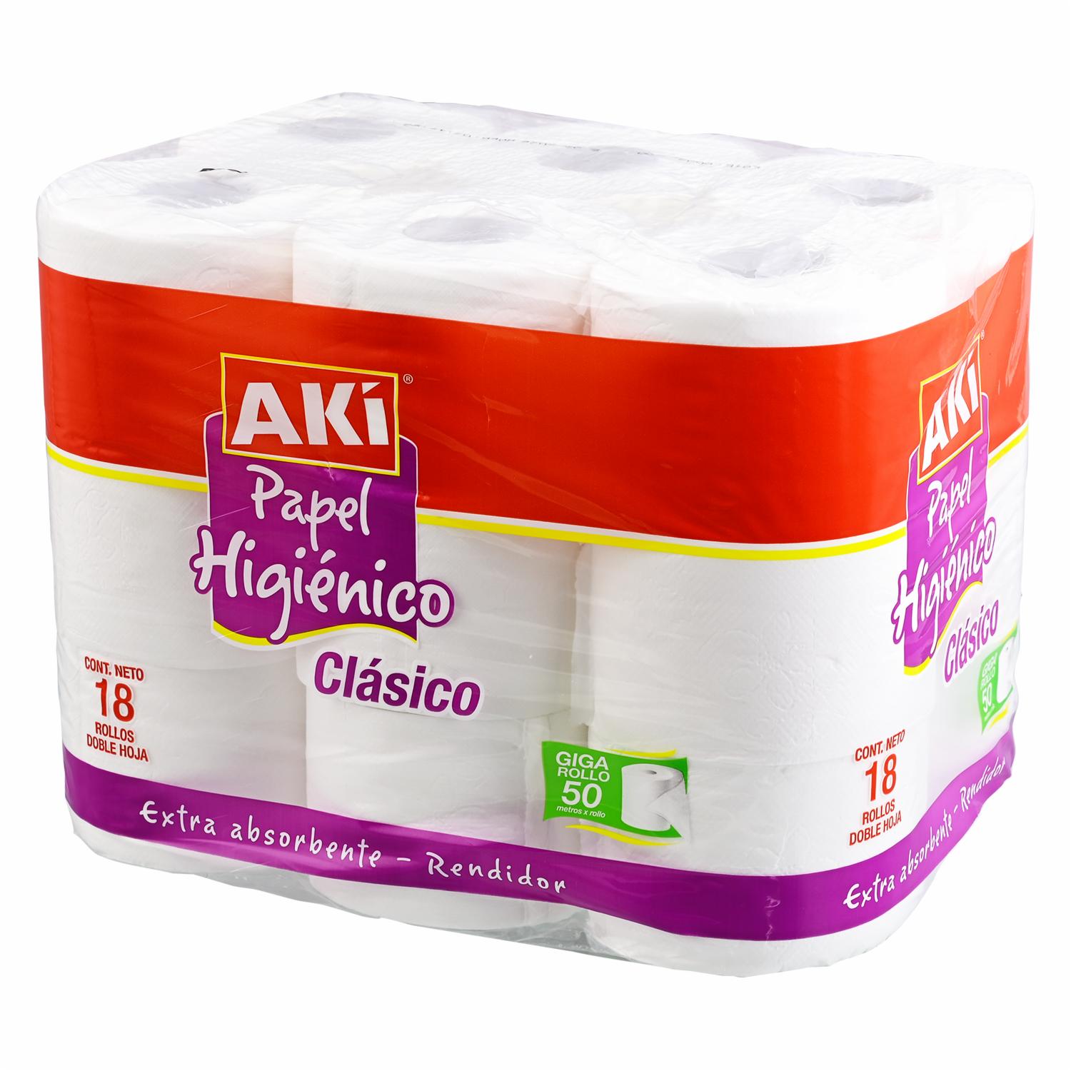 Papel Higiénico Clásico 3 En 1 AKÍ 18 Rollos