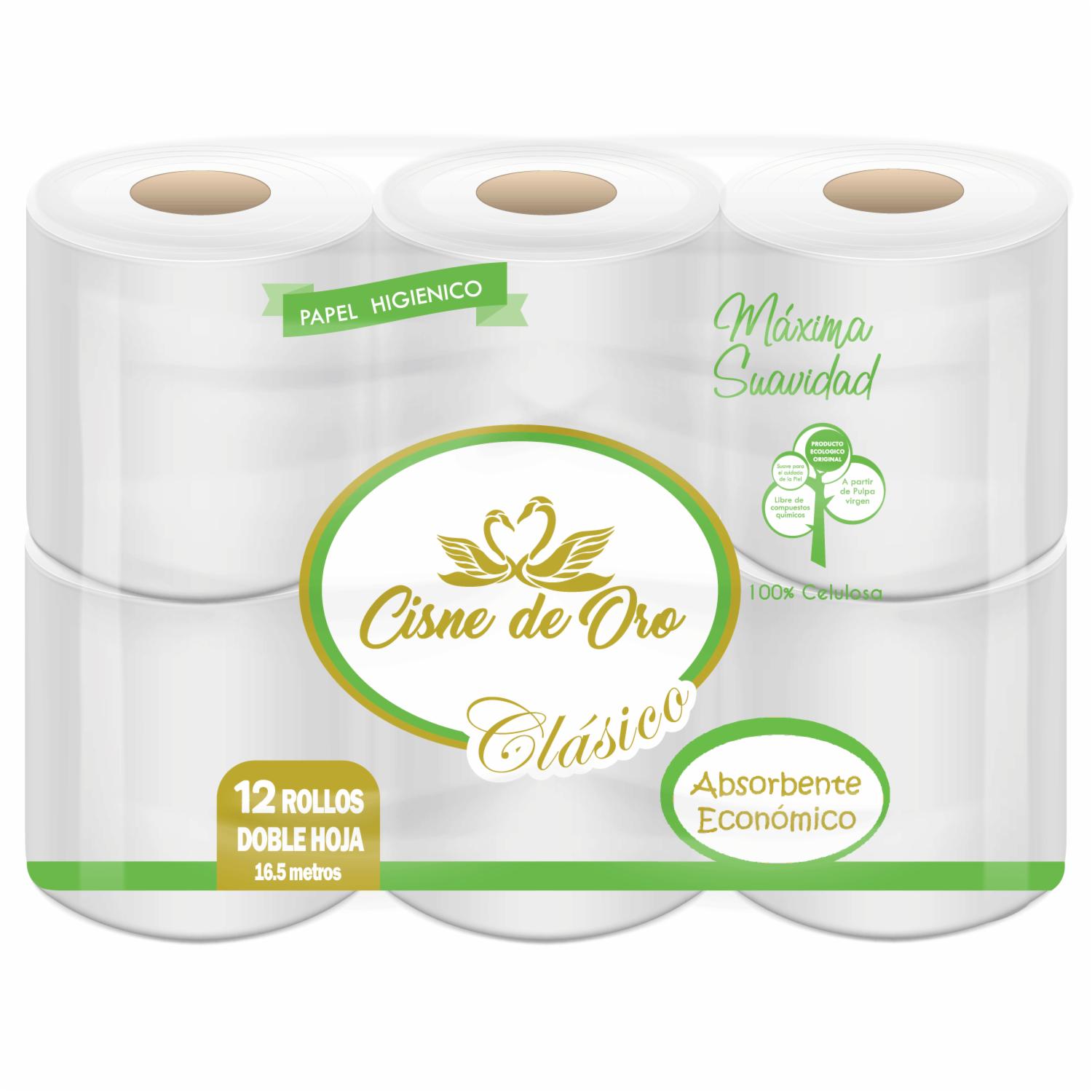 Papel Higiénico Máxima Suavidad Absorbente Doble Hoja CISNE DE ORO 12 Rollos