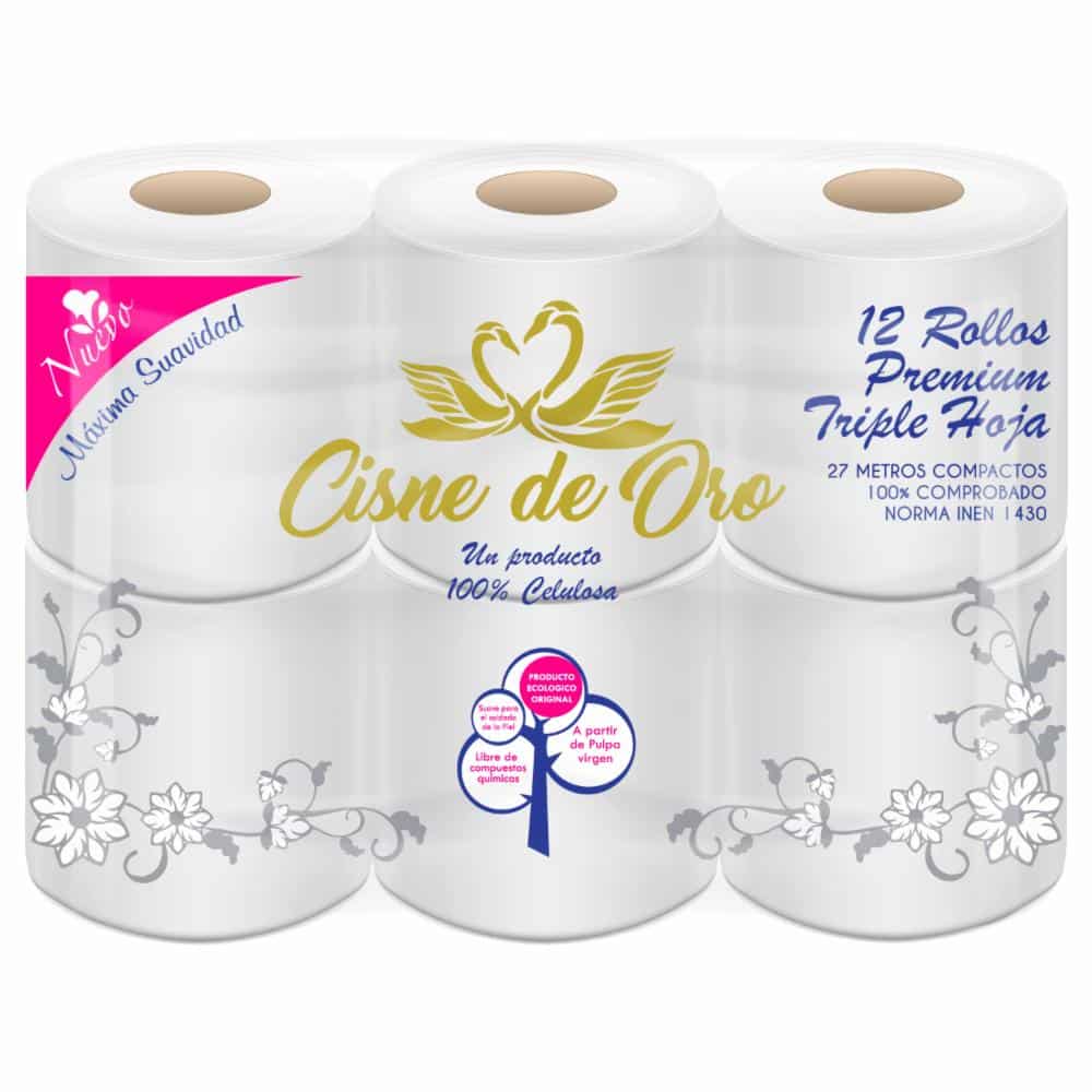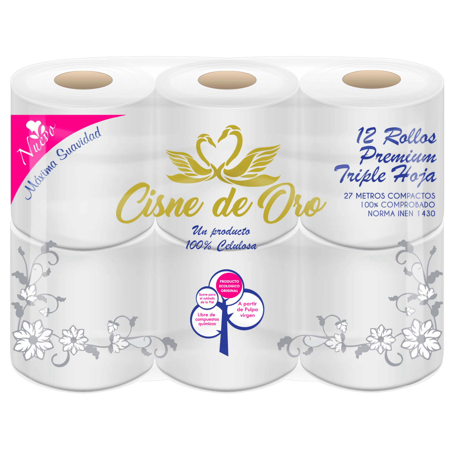 Papel Higiénico Máxima Suavidad Premium Triple Hoja CISNE DE ORO 12 Rollos