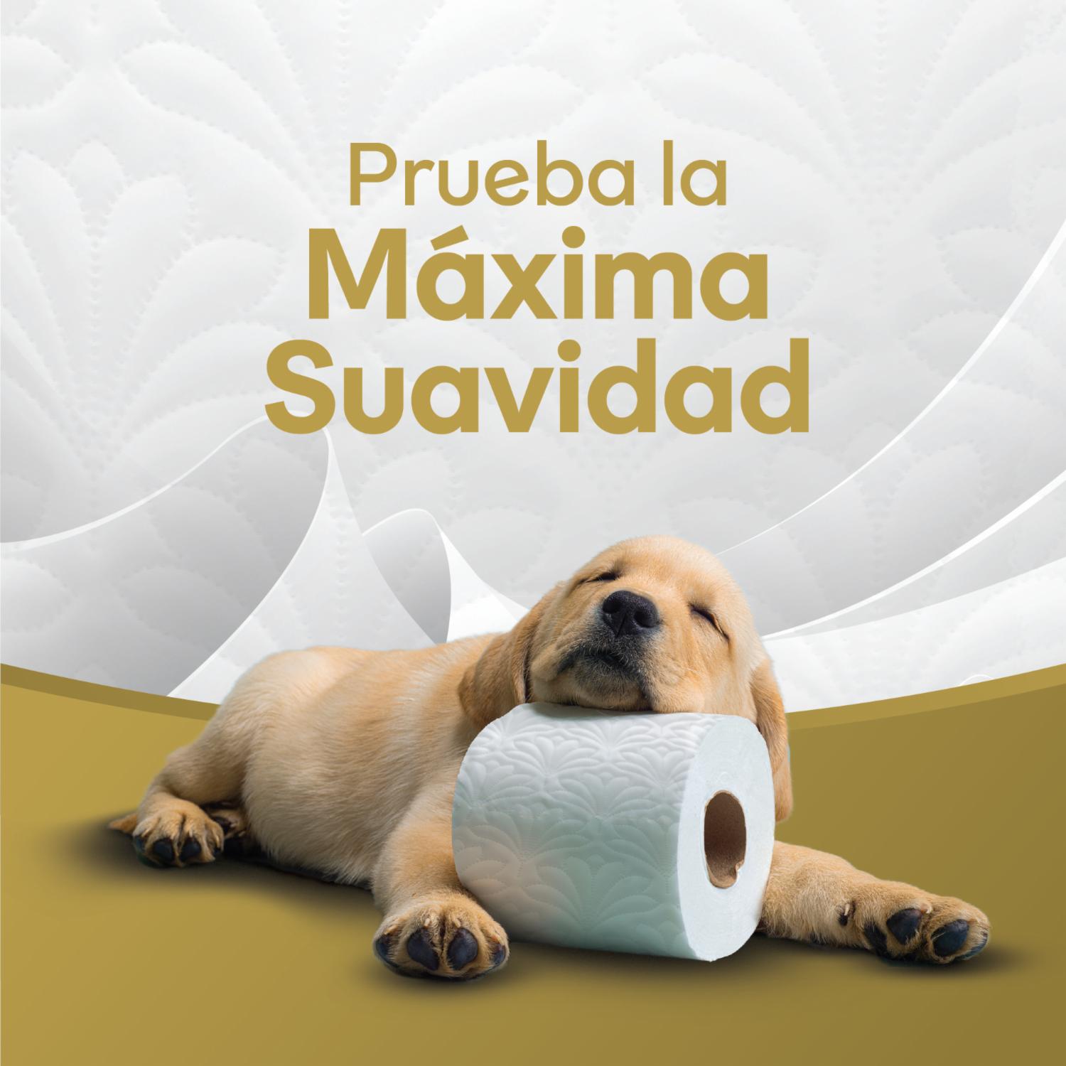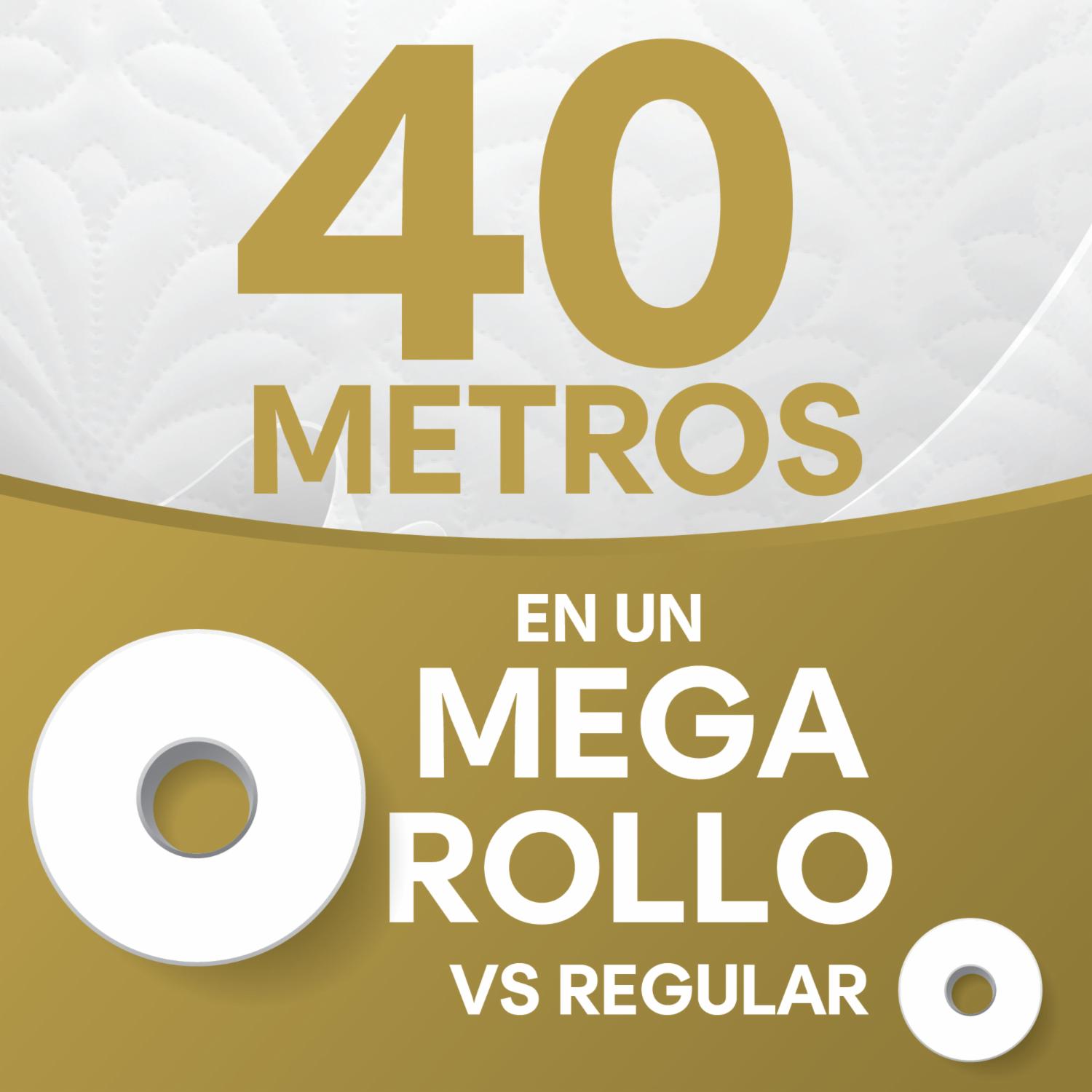 Triple Hoja ultra acolchada; Sensación de algodón; Suavidad insuperable; MEGA rollos: 40 metros por rollo; Mayor rendimiento