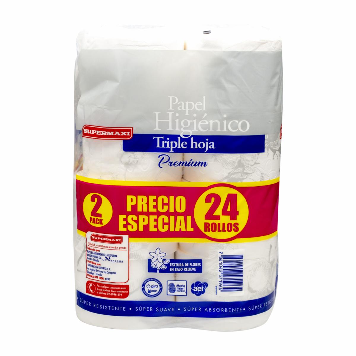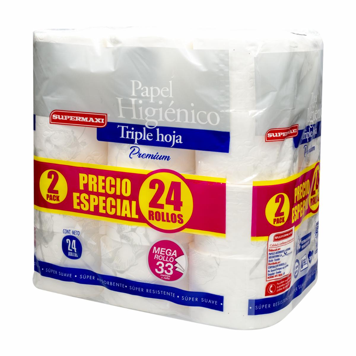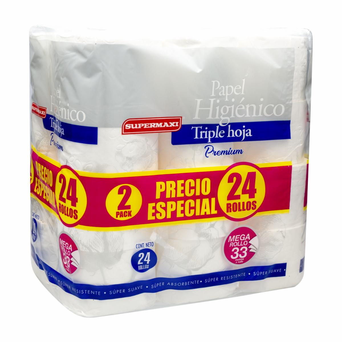 Papel Higiénico Premium Triple Hoja Precio Especial SUPERMAXI 24 Rollos