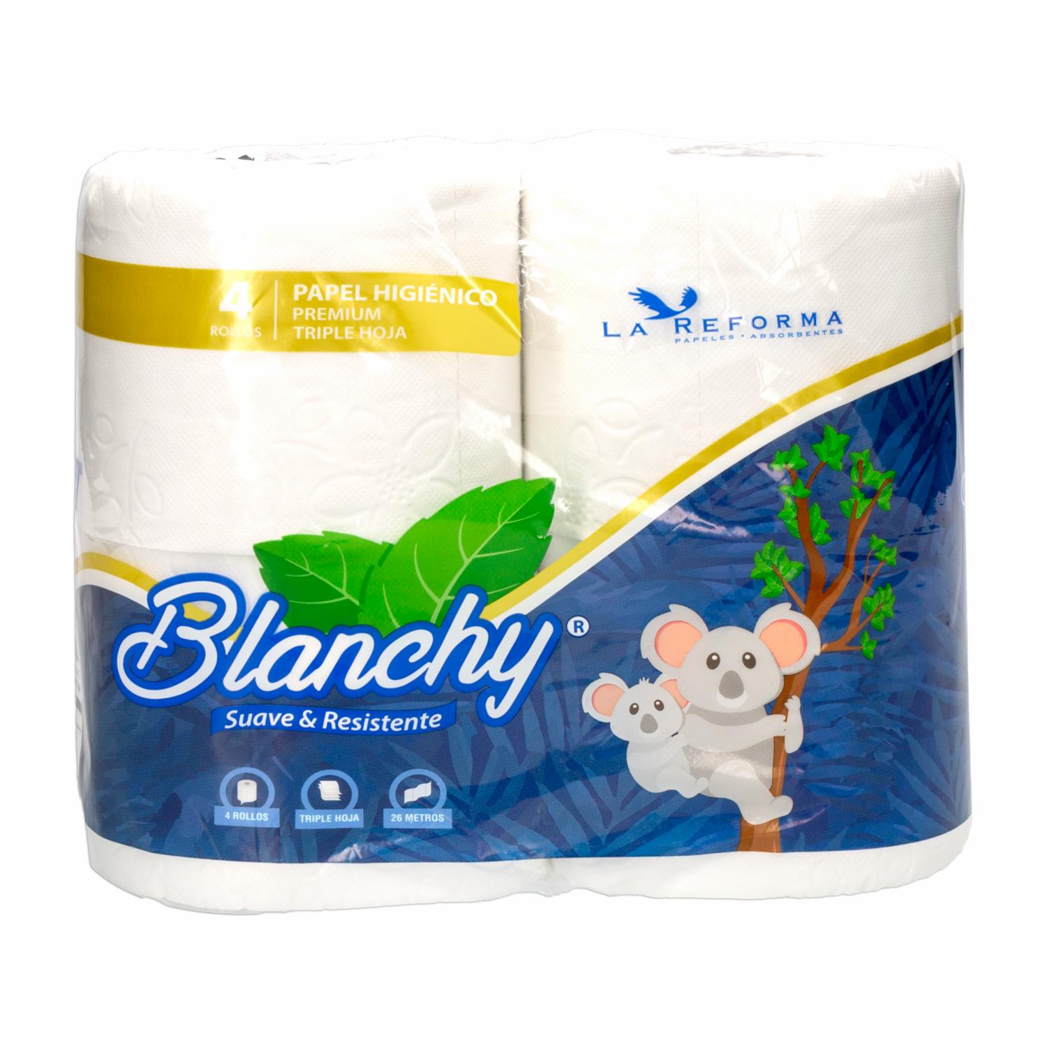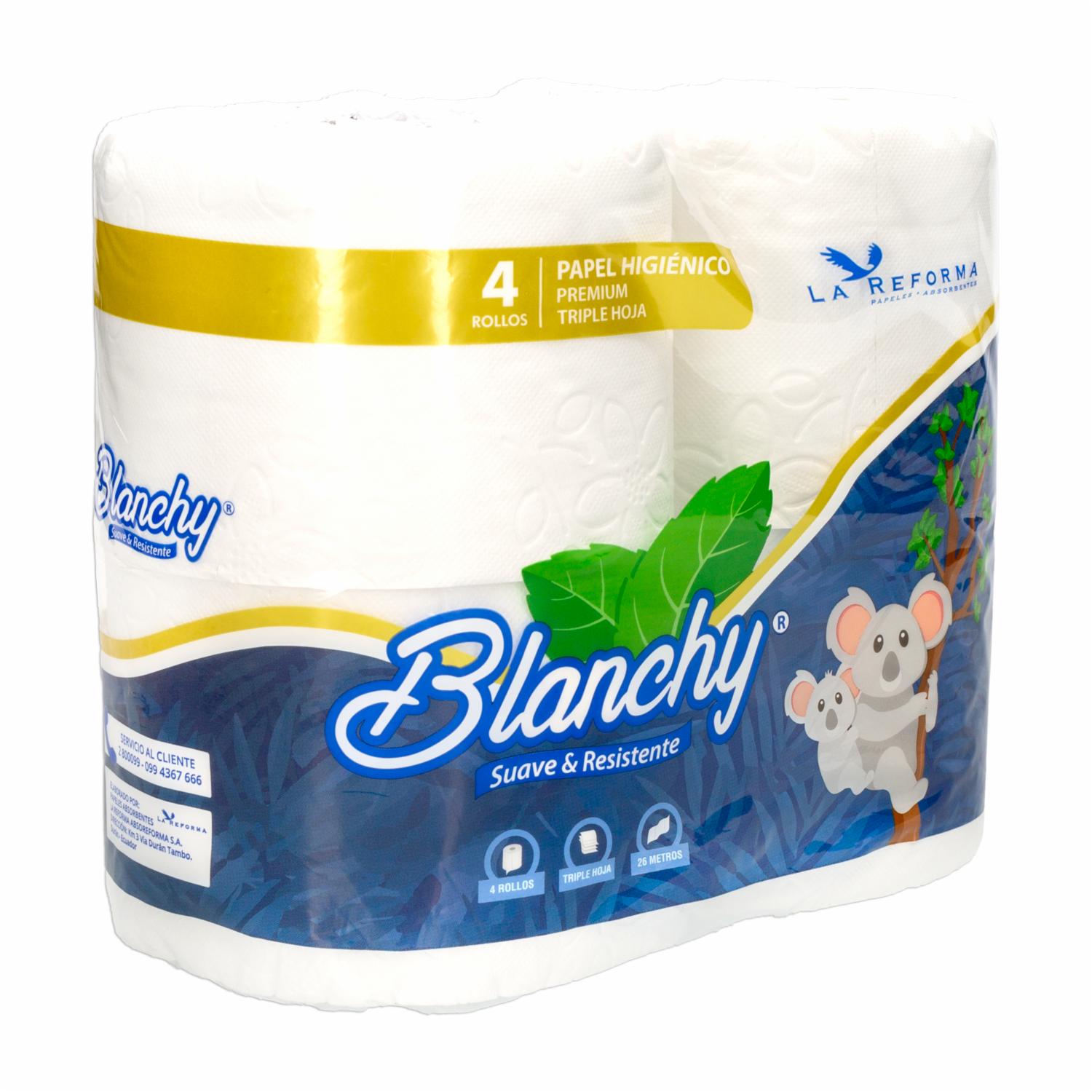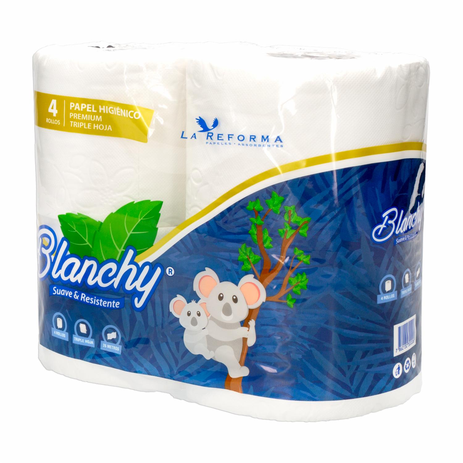 Papel Higiénico Premium Triple Hoja Suave Y Resistente BLANCHY 4 Rollos
