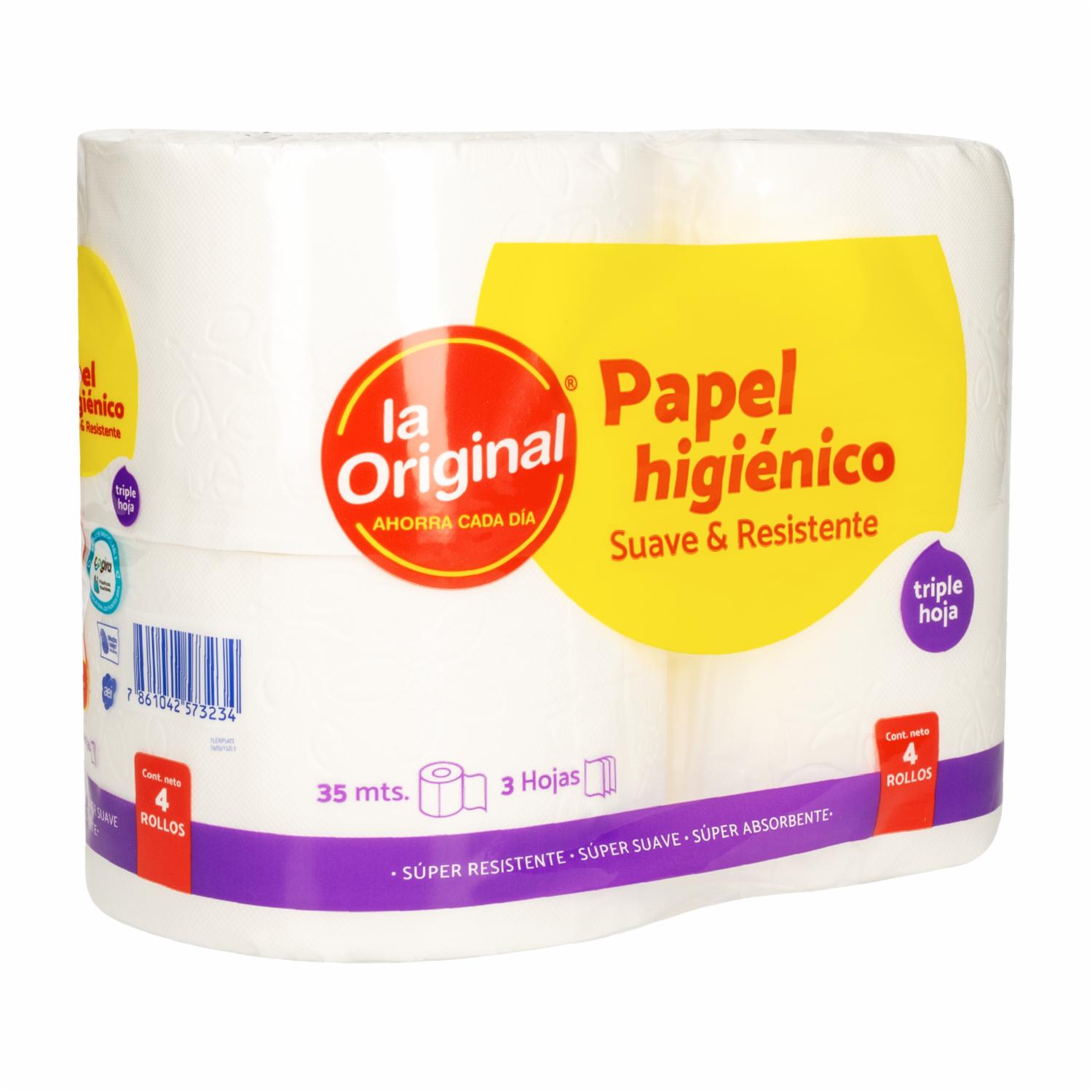 Papel Higiénico Triple Hoja Suave Y Resistente LA ORIGINAL 4 Rollos