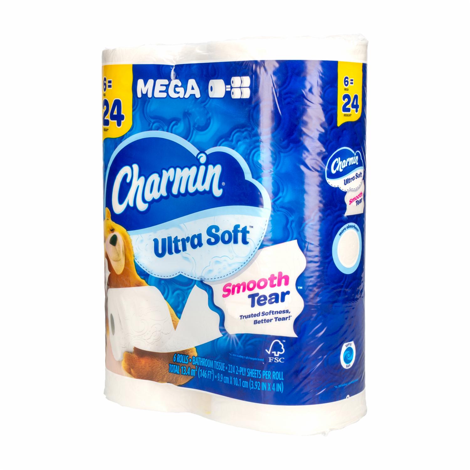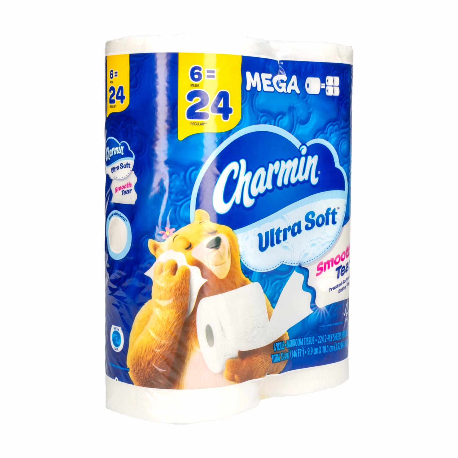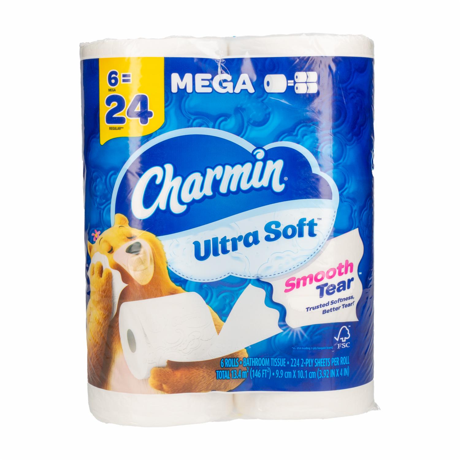- El paquete contiene 6 mega rollos (224 hojas por rollo) de papel higiénico Charmin Ultra Soft. Suavidad irresistible que puedes sentir