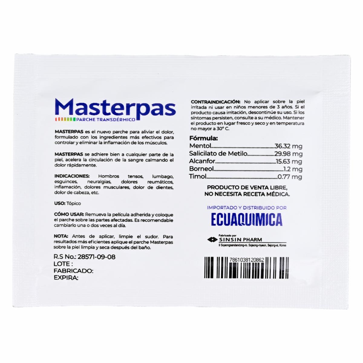 Parches Para El Dolor Muscular MASTERPAS 10 U – MASTERPAS. Disponible en nuestros locales. Precio y stock pueden variar según la tienda.