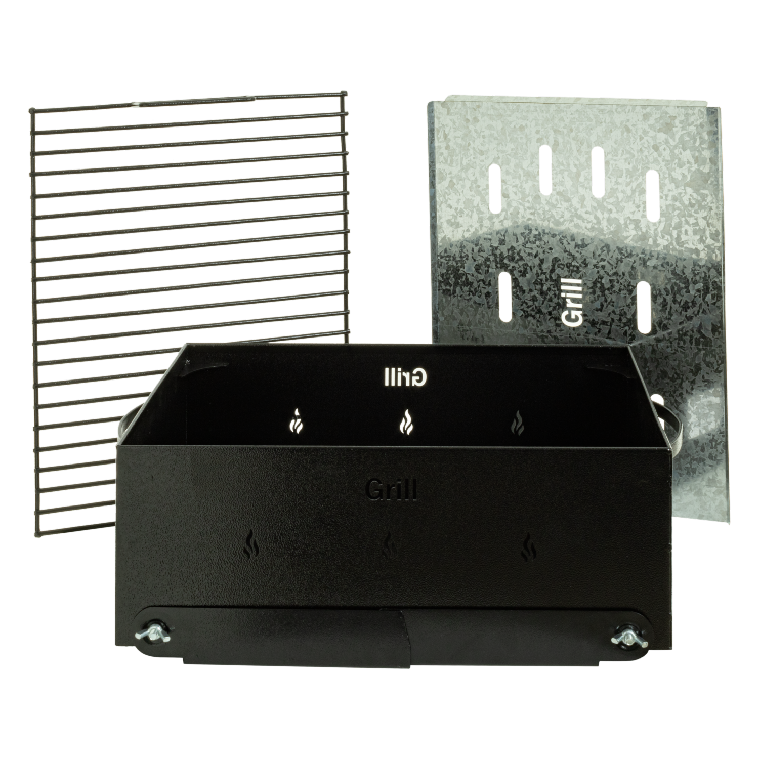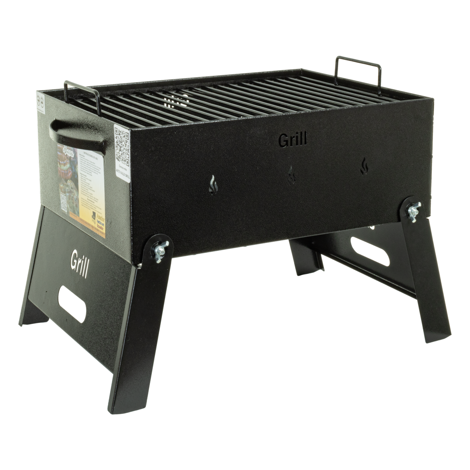 - - Rejilla de acero inoxidable para una mejor cocción. - Patas plegables para fácil almacenamiento y transporte. - Ideal para asados al carbón en espacios pequeños