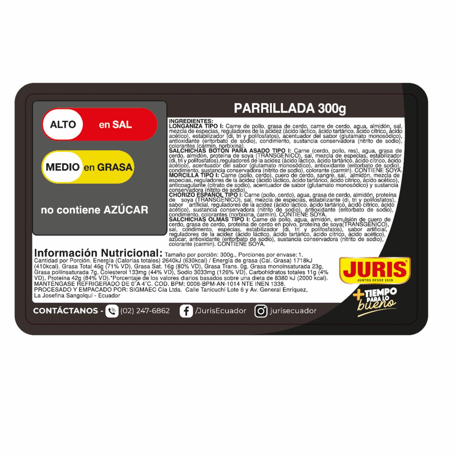 Parrillada Empacada JURIS 300 G – JURIS. Disponible en nuestros locales. Precio y stock pueden variar según la tienda.
