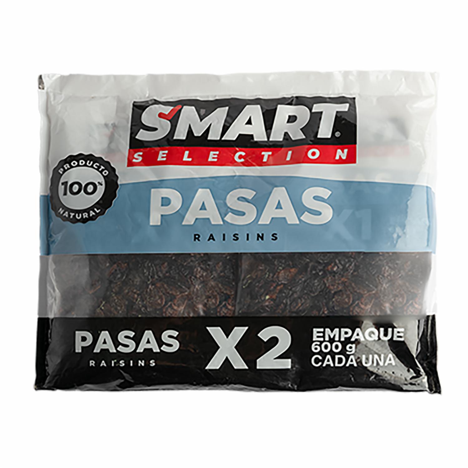 Pasas 100% Natural SMART SELECTION 2 X 600 G – SMART SELECTION. Disponible en nuestros locales. Precio y stock pueden variar según la tienda.