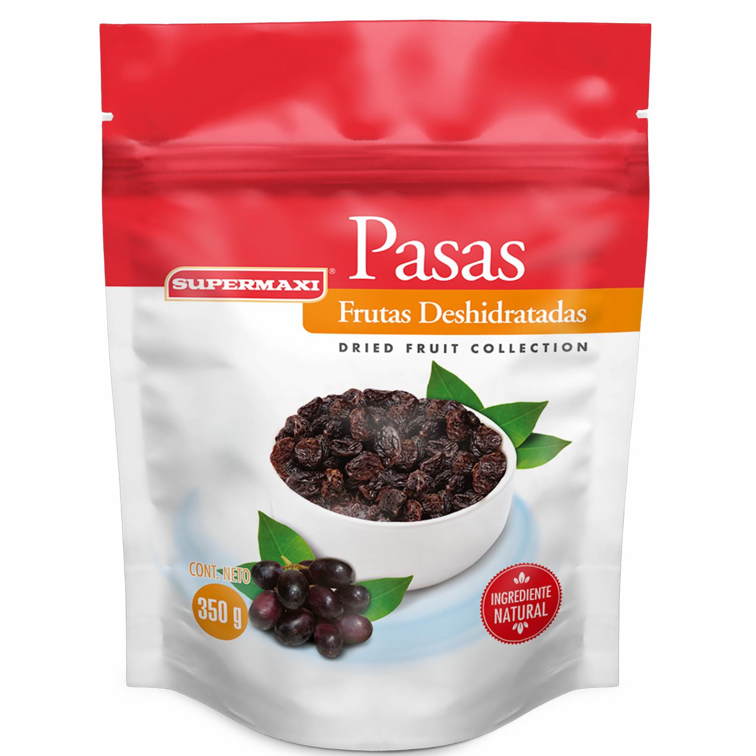 Pasas Natural SUPERMAXI Doypack – SUPERMAXI. Disponible en nuestros locales. Precio y stock pueden variar según la tienda.
