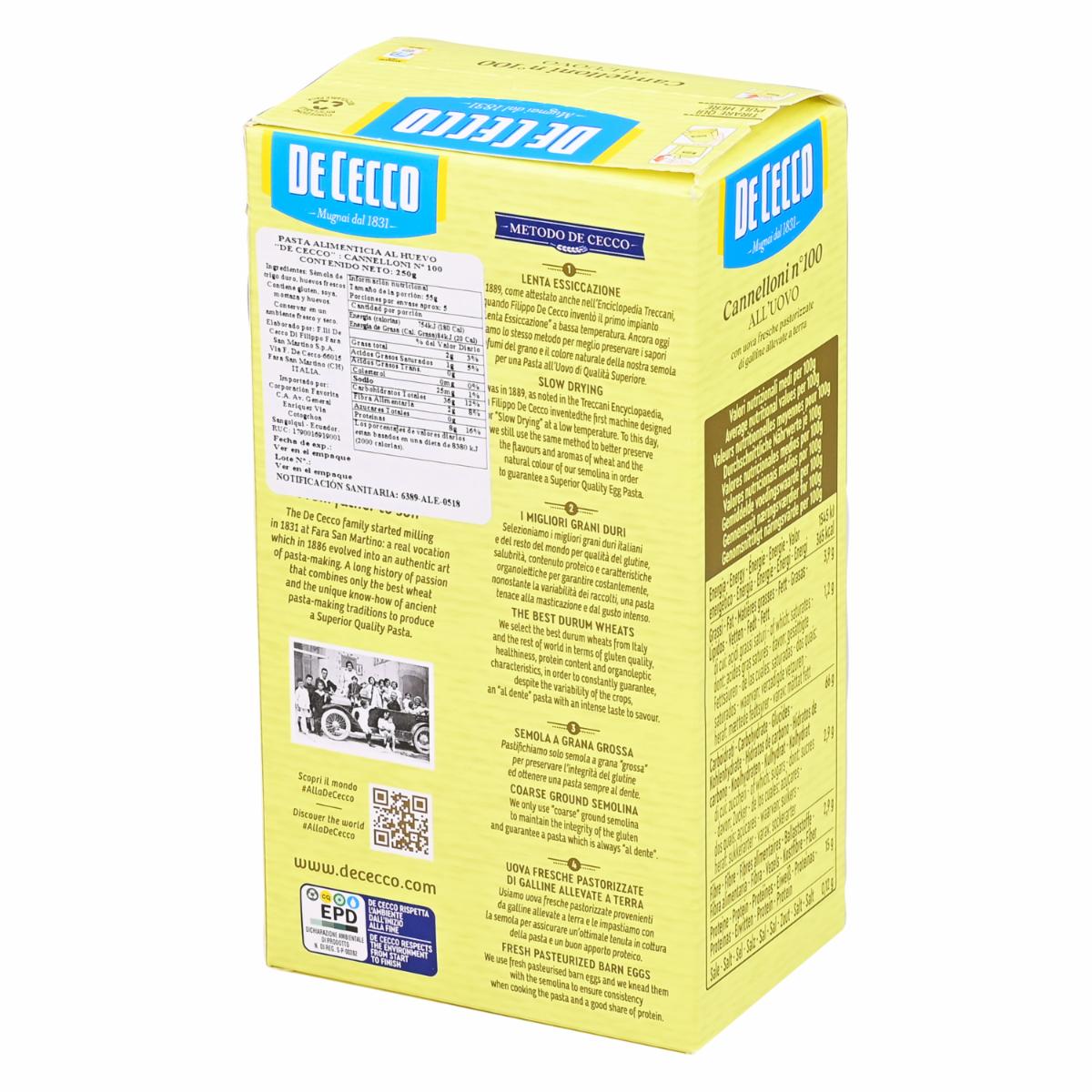 Pasta Al Huevo Para Canelones DE CECCO Funda