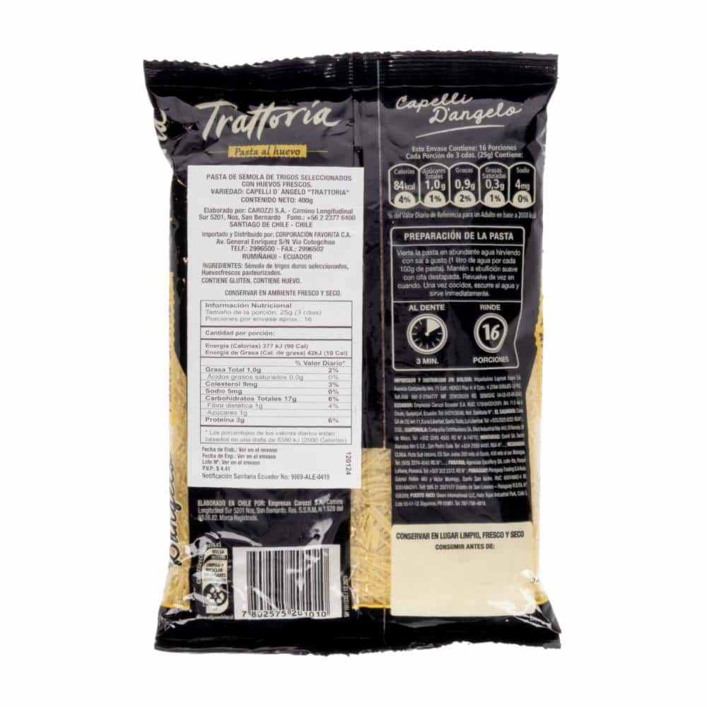 Pasta Cabello De Ángel TRATTORÍA 400 G – TRATTORIA. Disponible en nuestros locales. Precio y stock pueden variar según la tienda.
