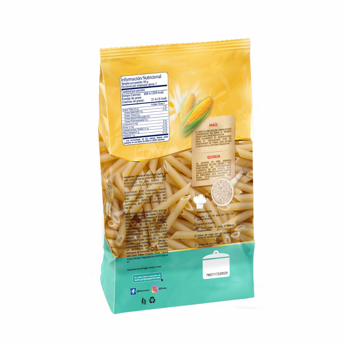 Una opción gourmet que transformará tus comidas en una experiencia única. Está pasta está elaborada con la mezcla de quinua y maíz, ofrece una textura delicada y un sabor auténtico que elevarán tus platillos a nuevos niveles de exquisitez