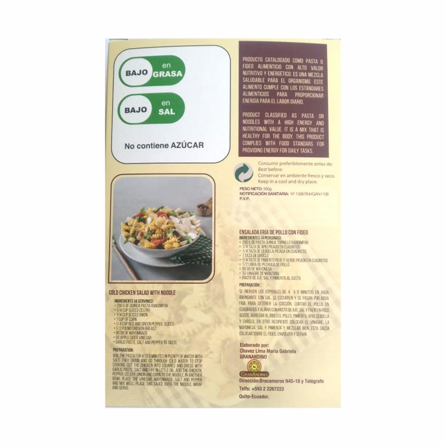 consultando preciosPasta De Quinua Macarrón Orgánico RANDIMPAK 350 G – RANDIMPAK. Disponible en nuestros locales. Precio y stock pueden variar según la tienda.