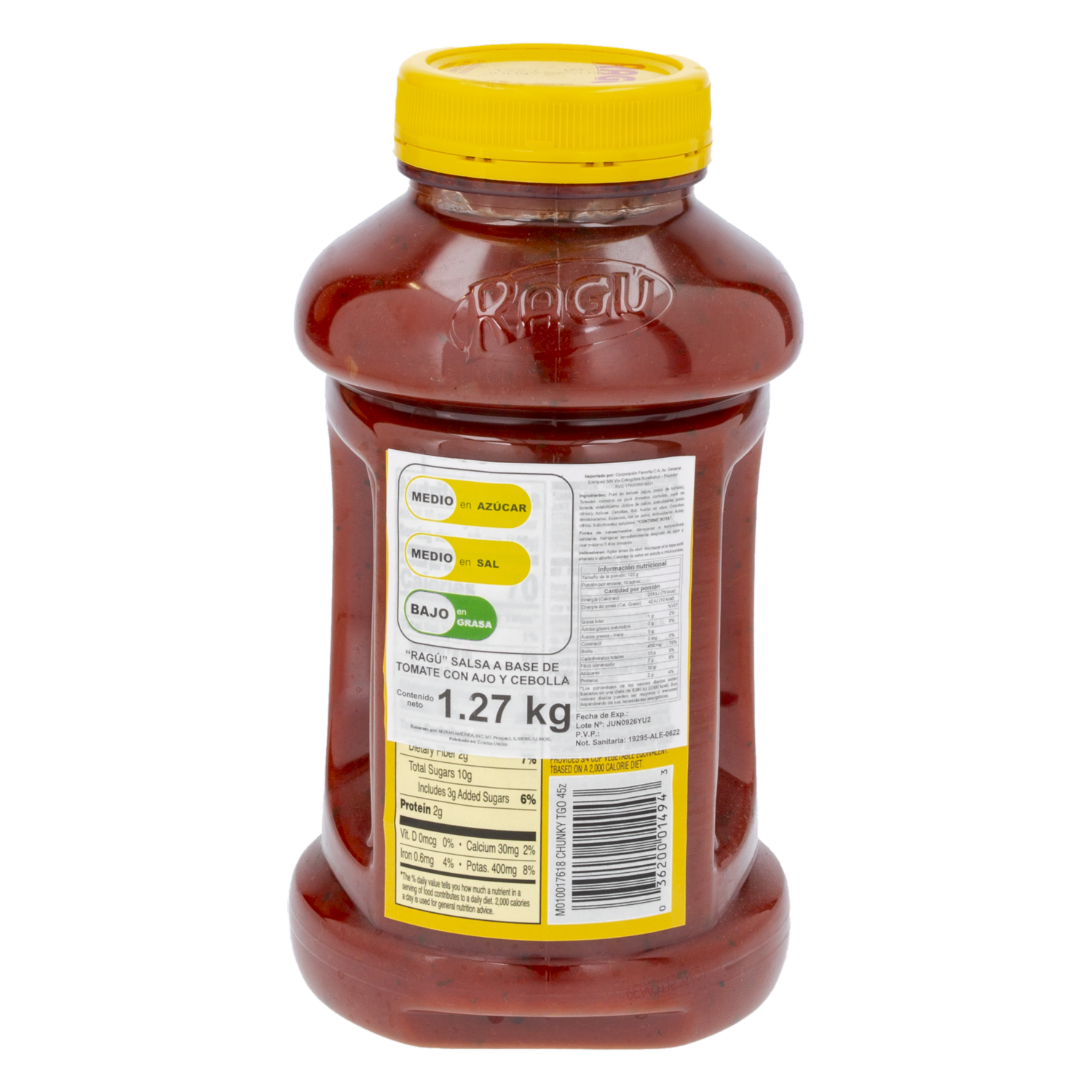 - La Pasta de Tomate Chunky Ragu 1270 g ofrece un sabor intenso y natural con trocitos de tomate que realzan cada plato. Ideal para preparar pastas, guisos o salsas caseras llenas de frescura y textura. Su consistencia espesa y su toque casero hacen que cada comida tenga un auténtico sabor italiano