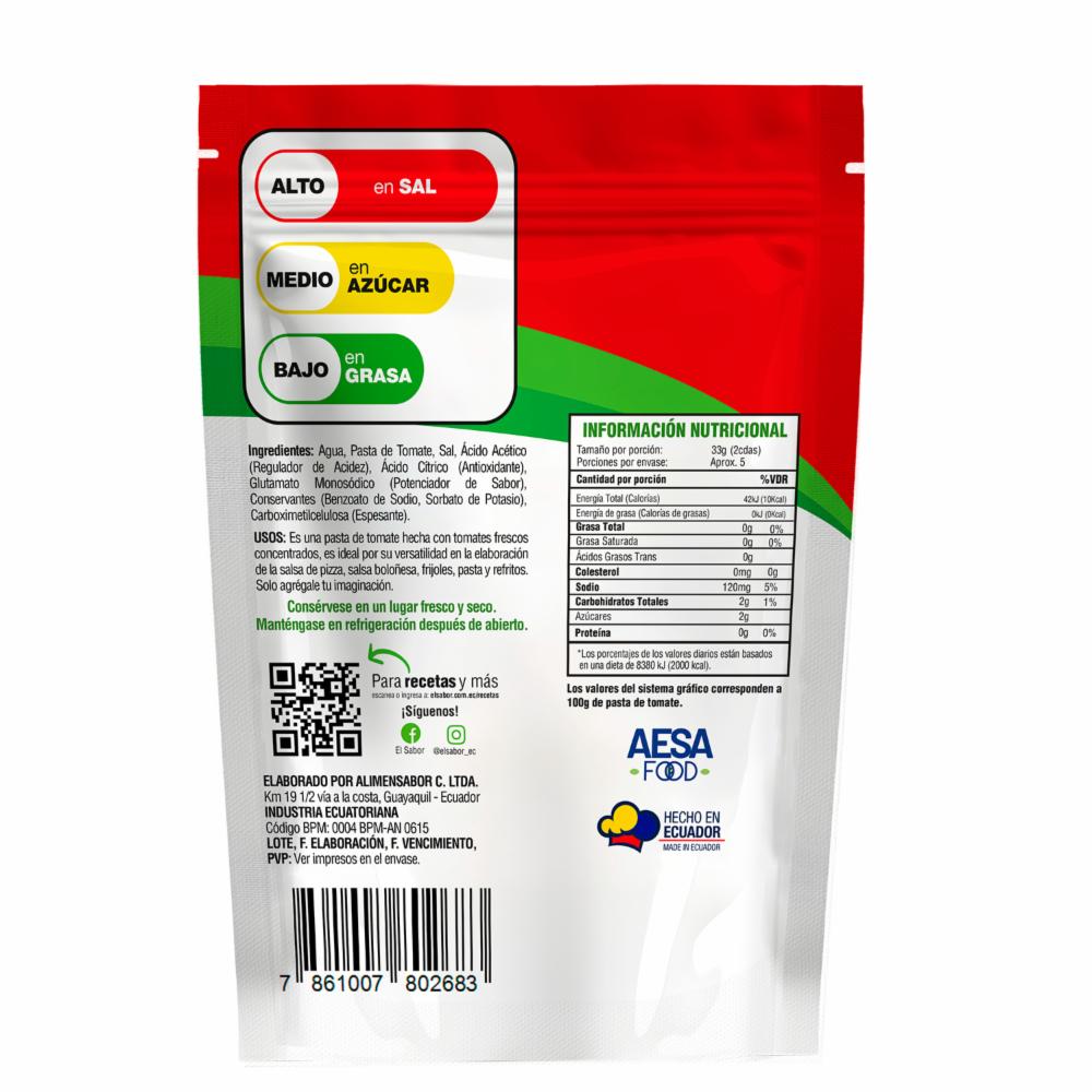 Pasta De Tomate Sin Preservantes EL SABOR 150 G